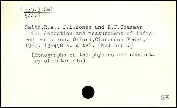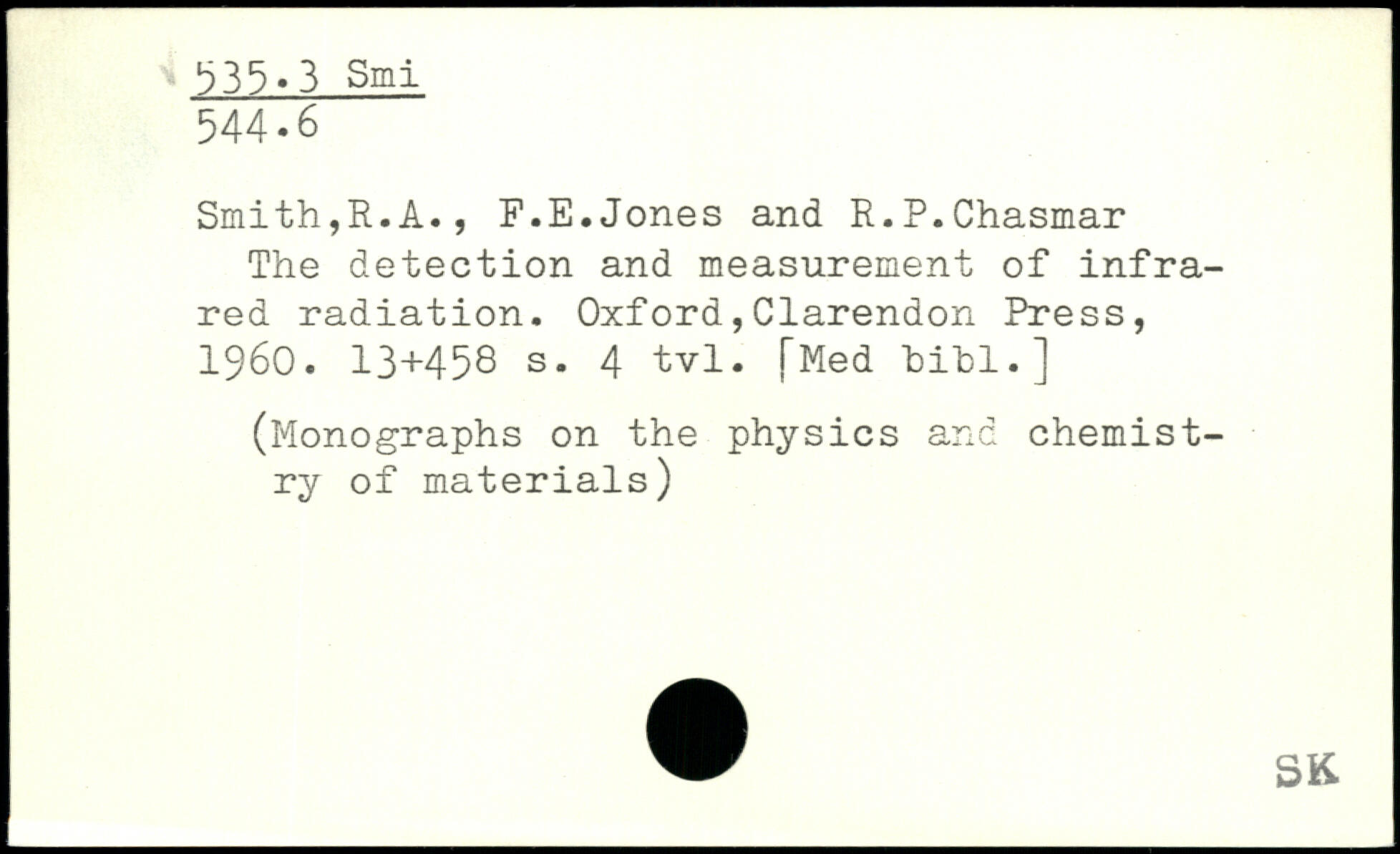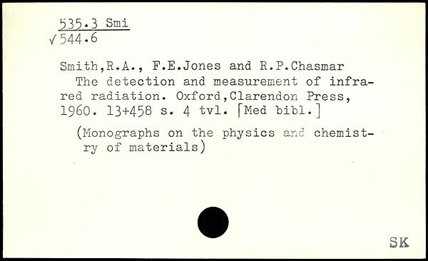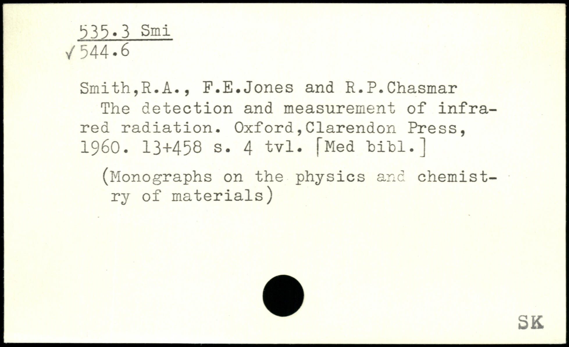 Smith,R.A., F.E.Jones and R.P.Chasmar The detection and measurement of infrared radiation.
