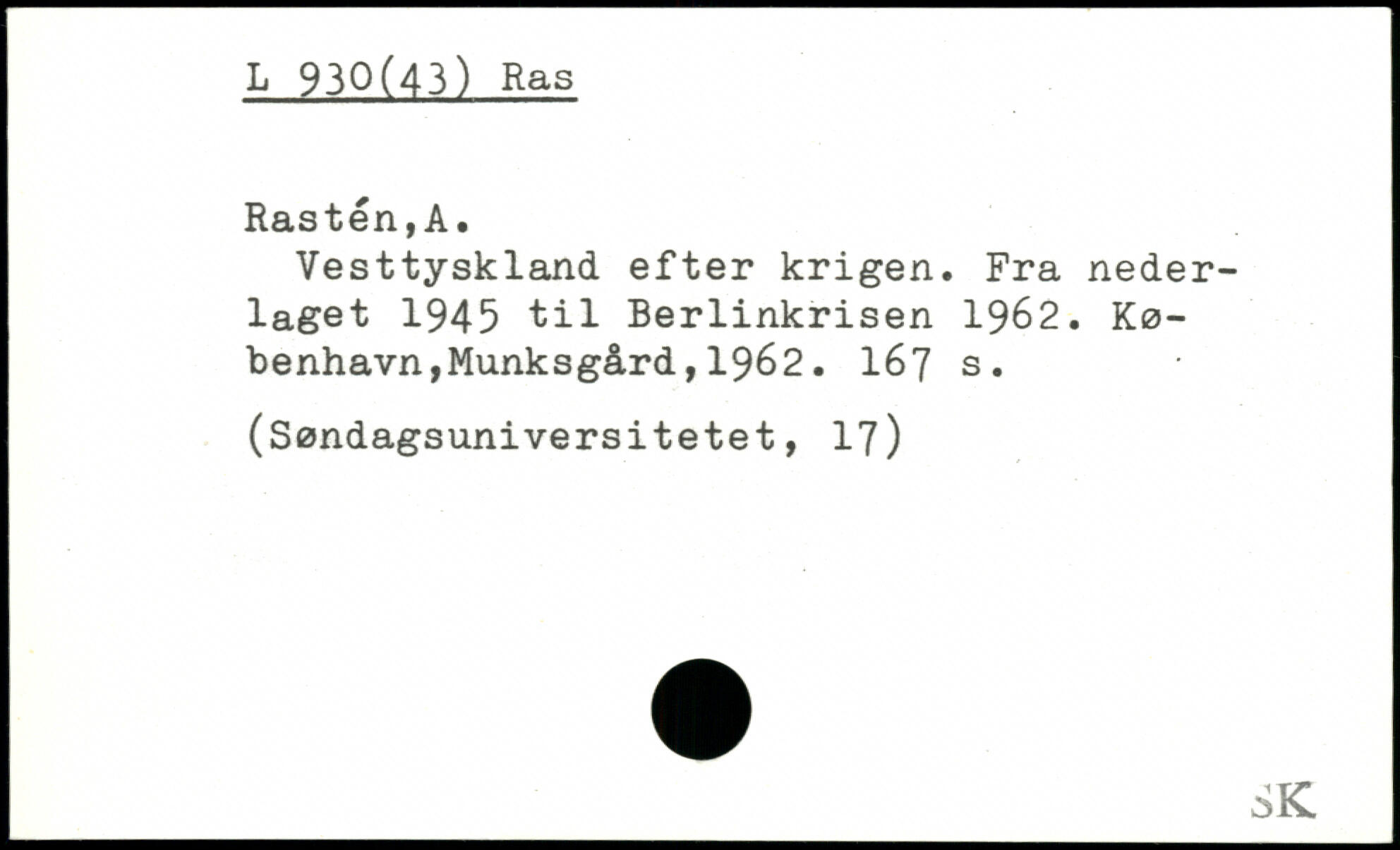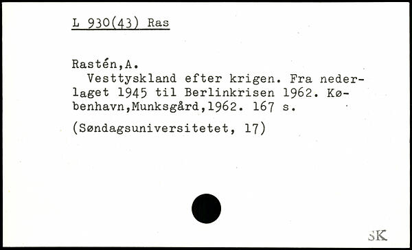 Vesttyskland efter krigen. Fra nederlaget 1945 til Berlinkrisen 1962.