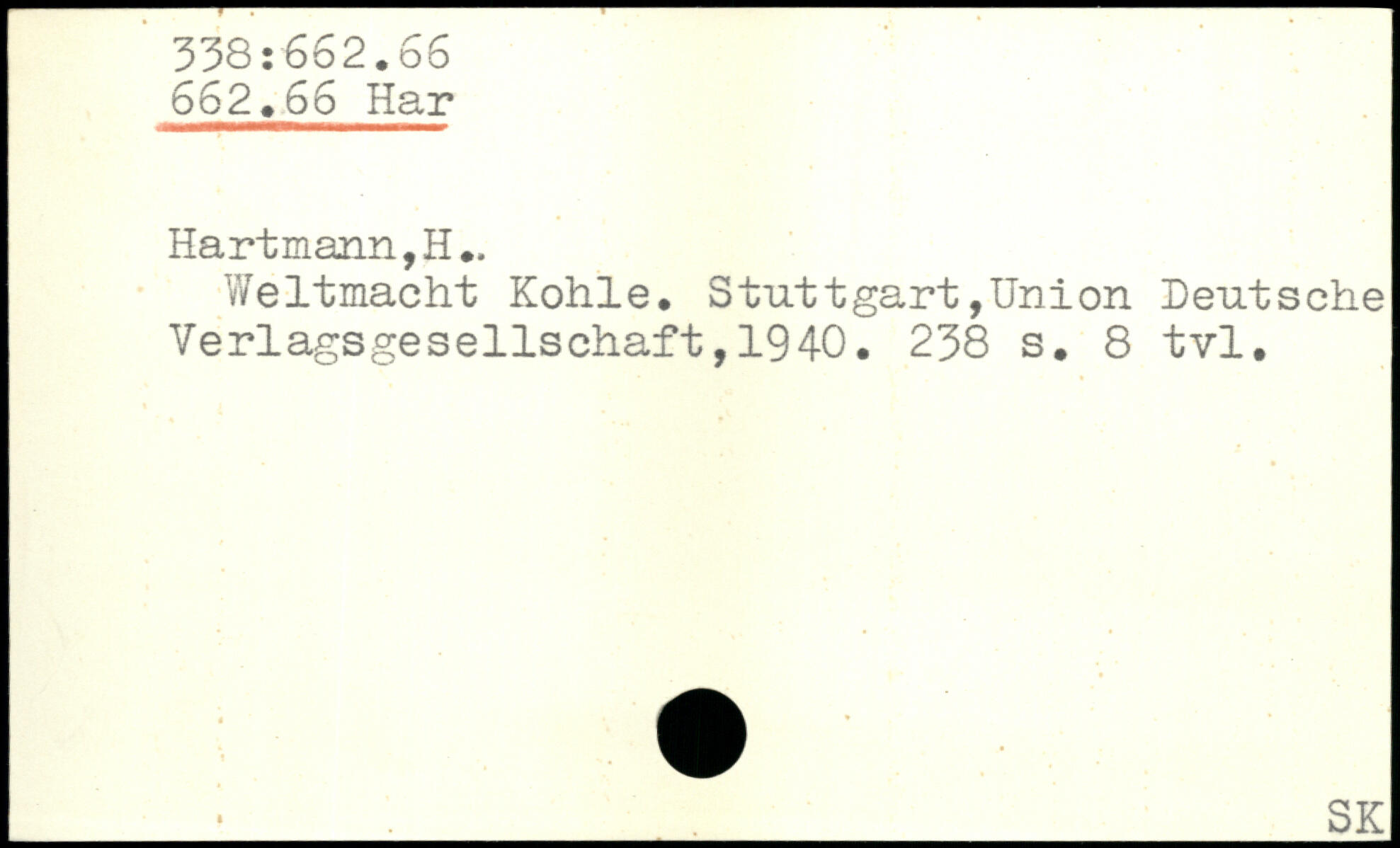 Hart mann, H,. Weltmacht Kohle, Stuttgart,Union Deutsche Verlagsgesellschaft, 194-0.