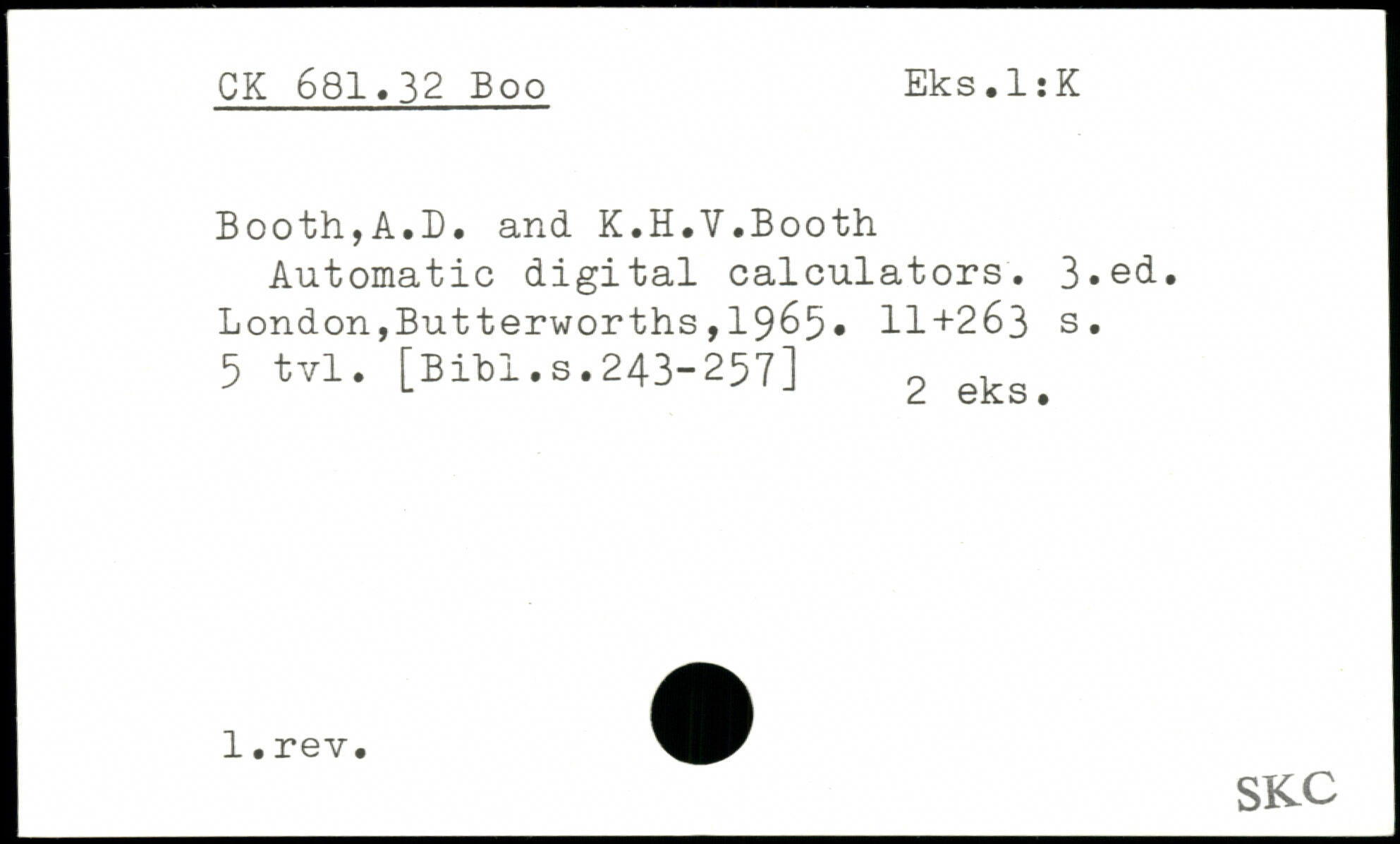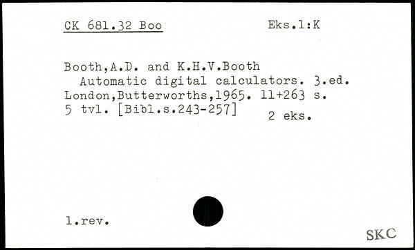 Forfatter: A.D. Booth, K.H.V. Booth