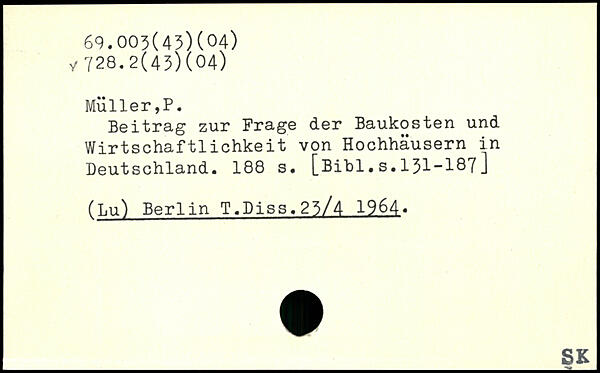 Beitrag zur Frage der Baukosten und Wirtschaftlichkeit von Hochhäusern in Deutschland.
