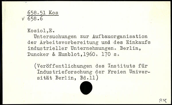 Untersuchungen zur Aufhauorganisation der Arbeitsvorbereitung und des Einkaufs industrieller Unternehmungen.