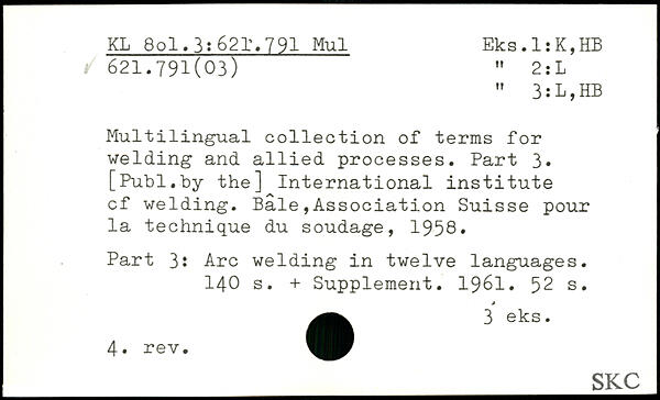Multilingual collection of terms for welding and allied processes. Part 3.