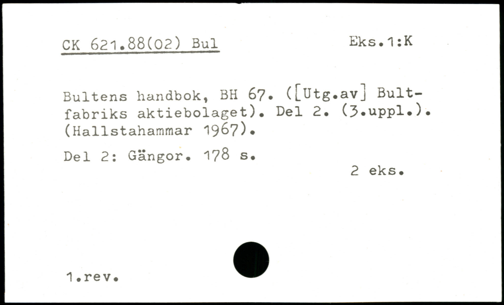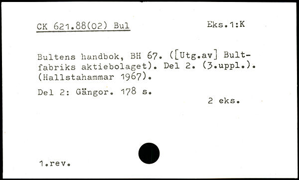 Bultens handbok, BH 67, ([utg.avj Bult-fabriks aktiebolaget). Del 2. (