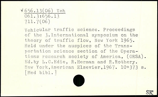 Vehicular traffic science. Proceedings of the 3.International symposium on the theory of traffic flow