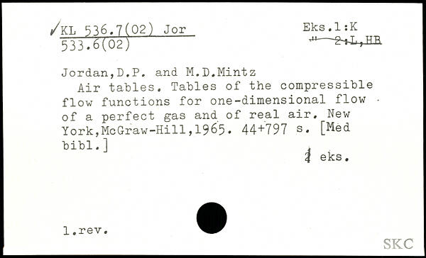 Air tables. Tables of the compressible flow functions for one-dimensional flow. of a perfect gas and of real air.