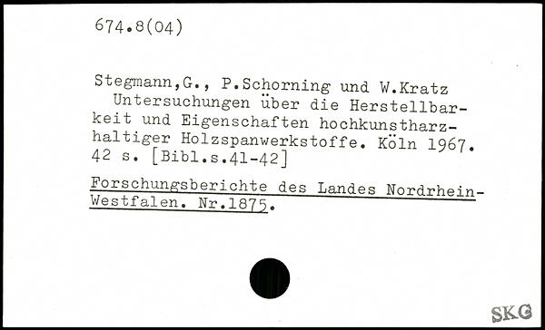 Stegmann,G., P.Schorning und W.Kratz Untersuchungen über die Herstellbar-keit^und Eigenschaften hochkunstharzhaltiger Holzspanwerkstoffe.