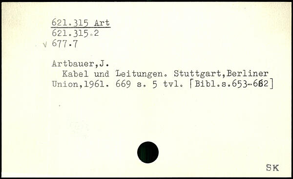 Kabel und Leitungen, Stuttgart,Berliner Union,1961. 669 s. 5 tvl, fBibi.s.653-662]