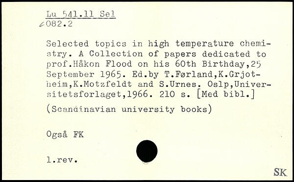 Selected topics in high temperature chemistry. A Collection of papers dedicated to prof.Håkon Flood on his 60th Birthday