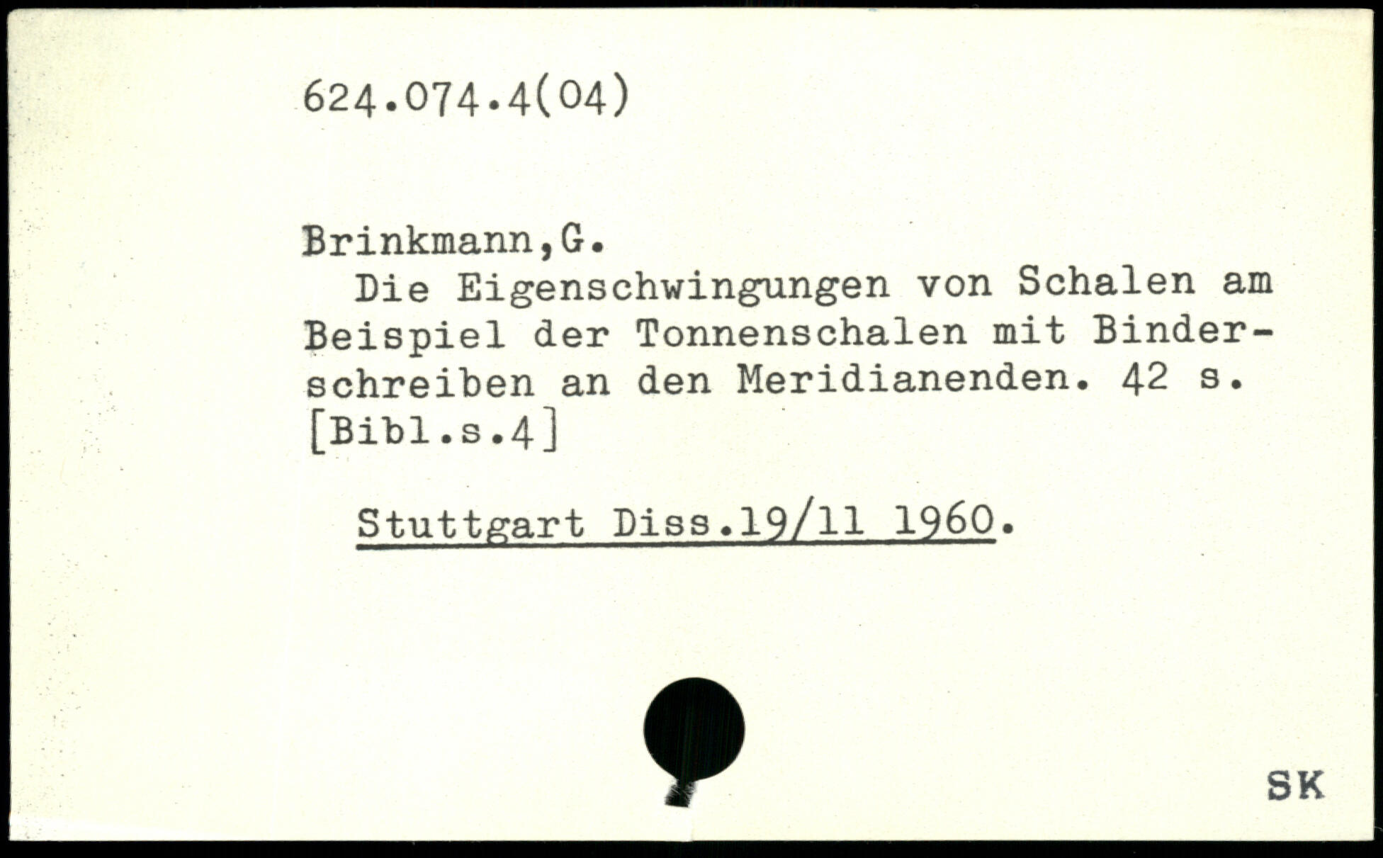 Die Eigenschwingungen von Schalen am Beispiel der Tonnenschalen mit Binderschreiben an den Meridianenden.