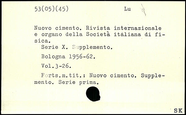 Nuovo cimento. Rivista internaziona.le e organo della Società italiana di fi-sica. Serie X. Supplement o. Bologna 1956-62.