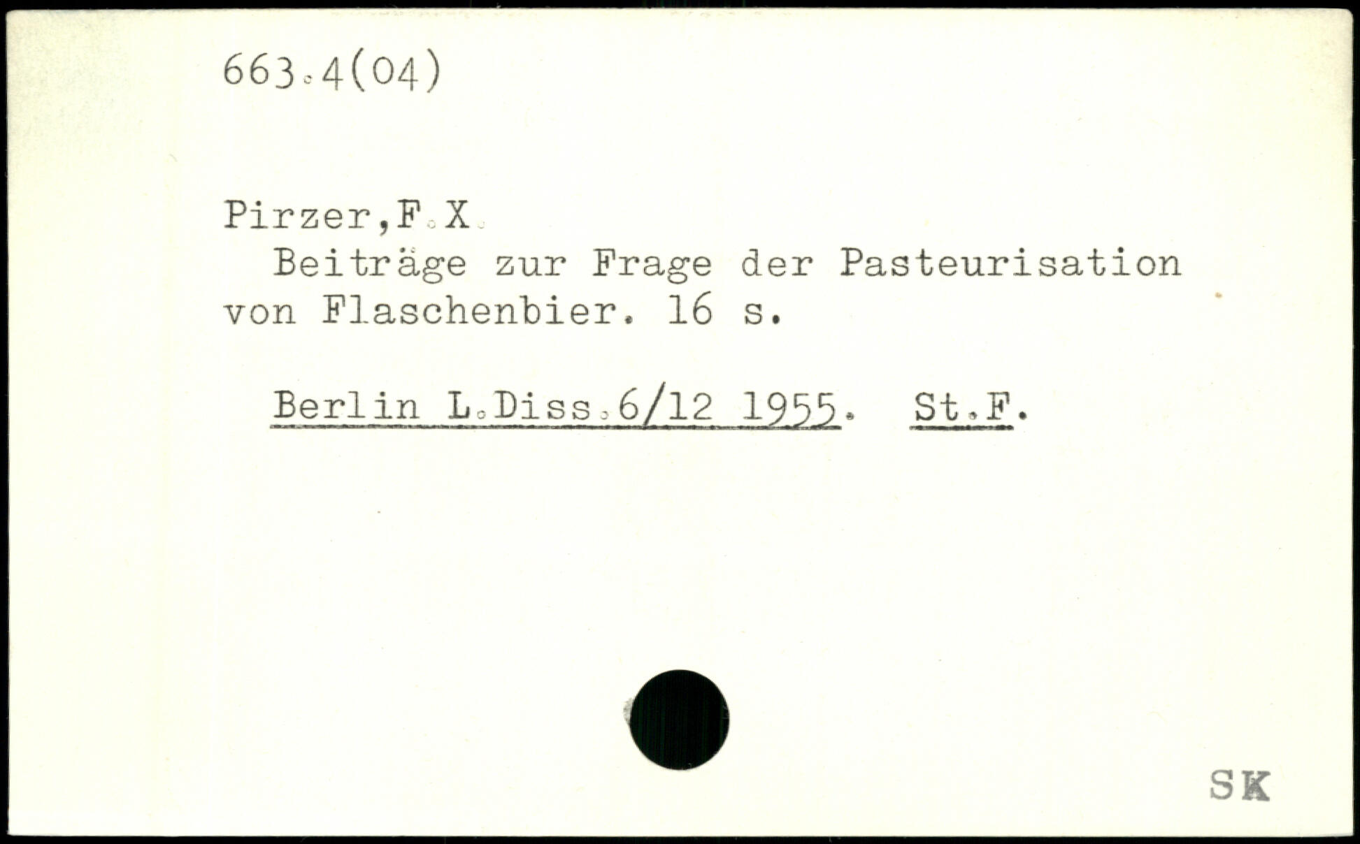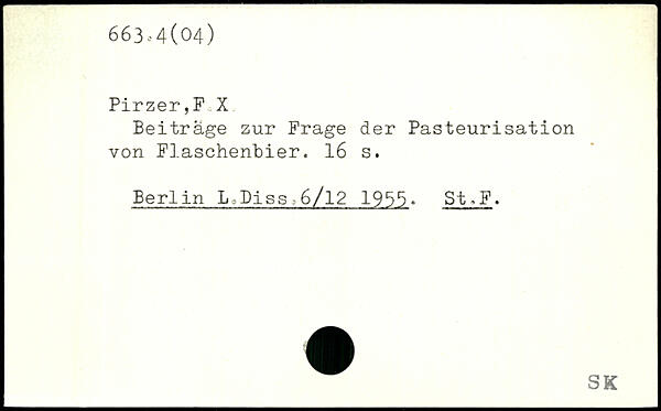 Pirzer,F X Beiträge zur Frage der Pasteurisation von Flaschenbier.