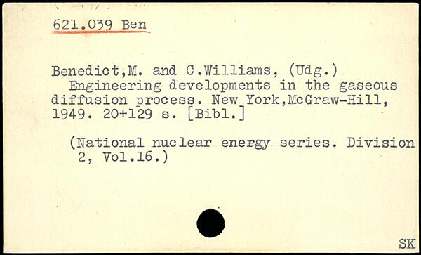 Benedict,M. and 0.W1111ams, (Udg.) Engineering developments in the gaseous diffusion process.