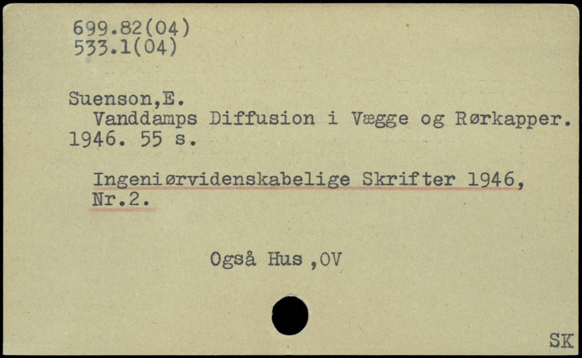 Vanddamps Diffusion i Vægge og Rørkapper. 1946.