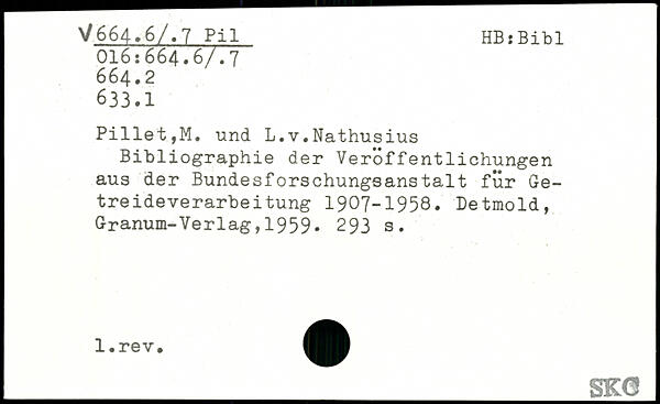 Bibliographie der Veröffentlichungen aus der Bundesforschungsanstalt für Ge-treideverarbei tung 1907-1958.