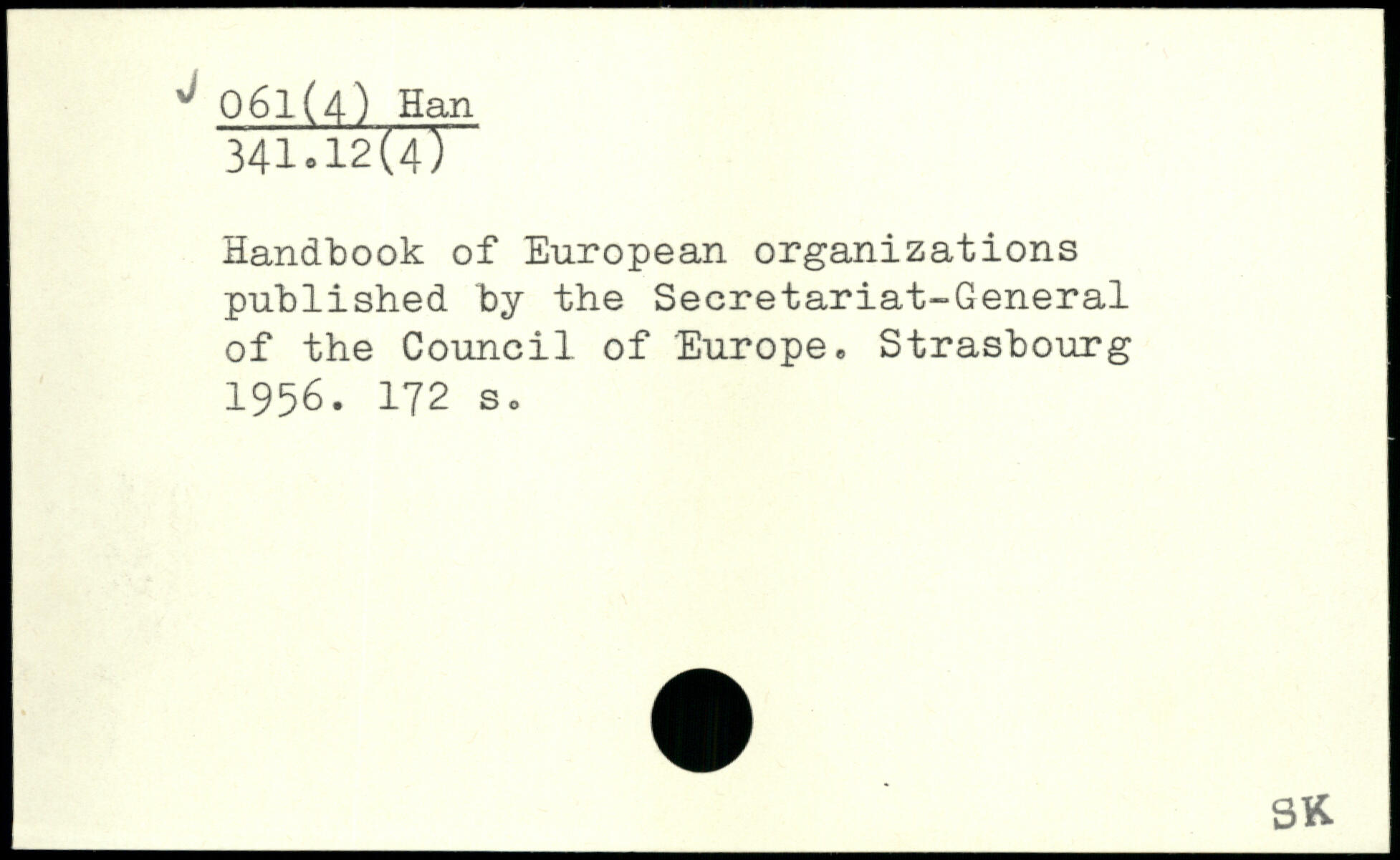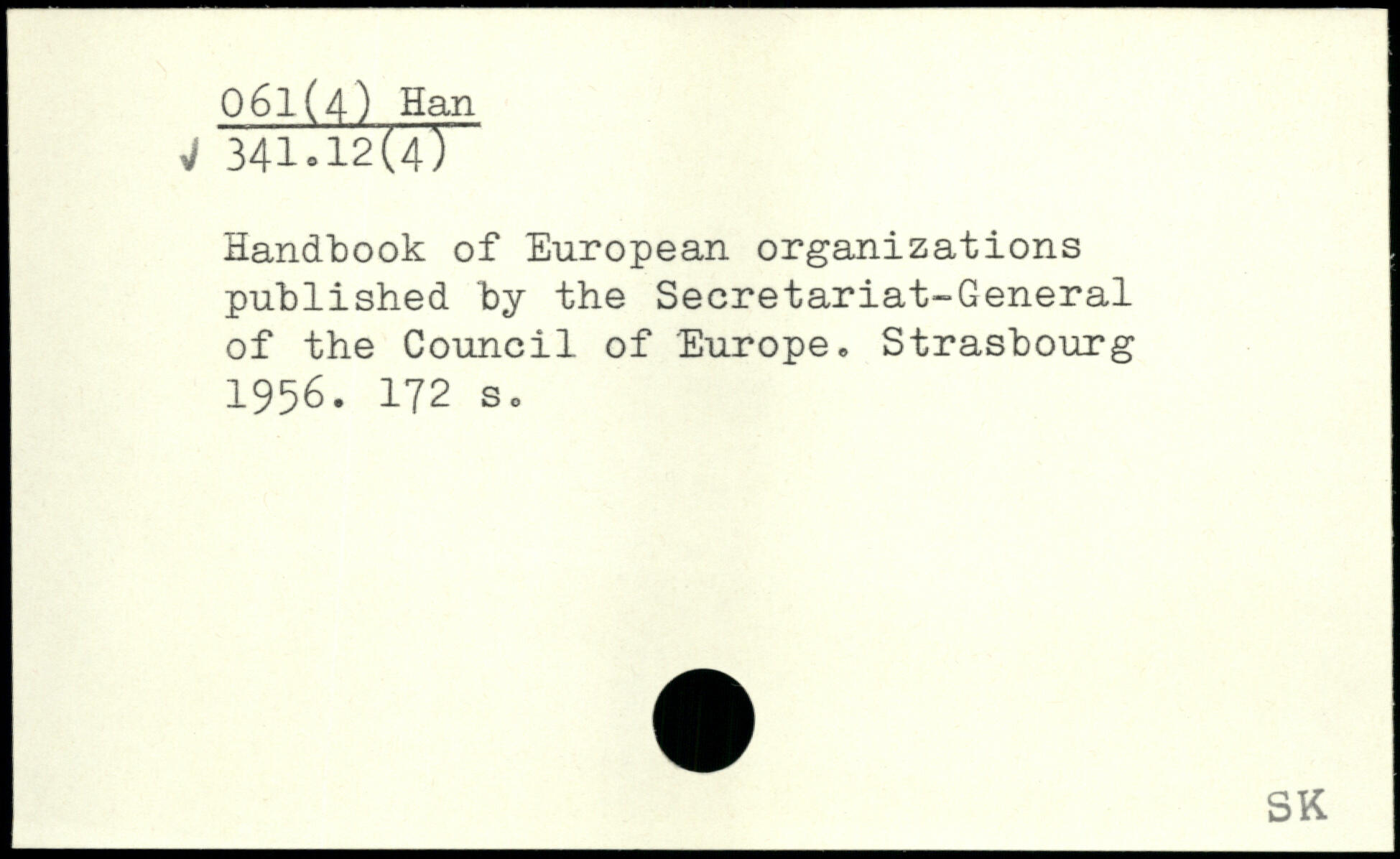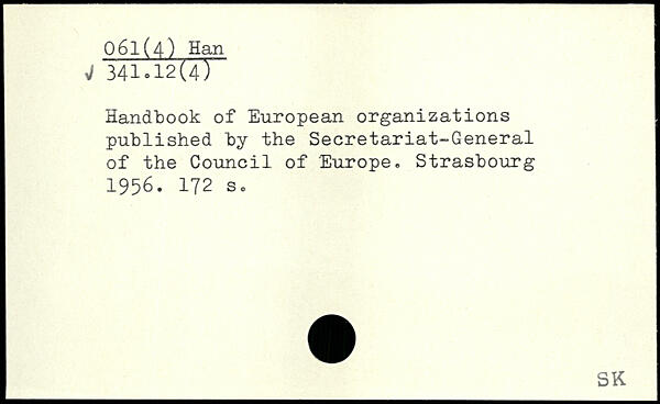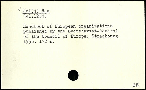 Handbook of European organizations published by the Secretariat-General of the Council of Europe. Strasbourg 1956.