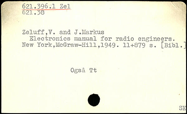 r bZI'jQ6'1 ~Al ^ 1 Zeluff,V. and J.Markus Electronics manual for radio engineers.