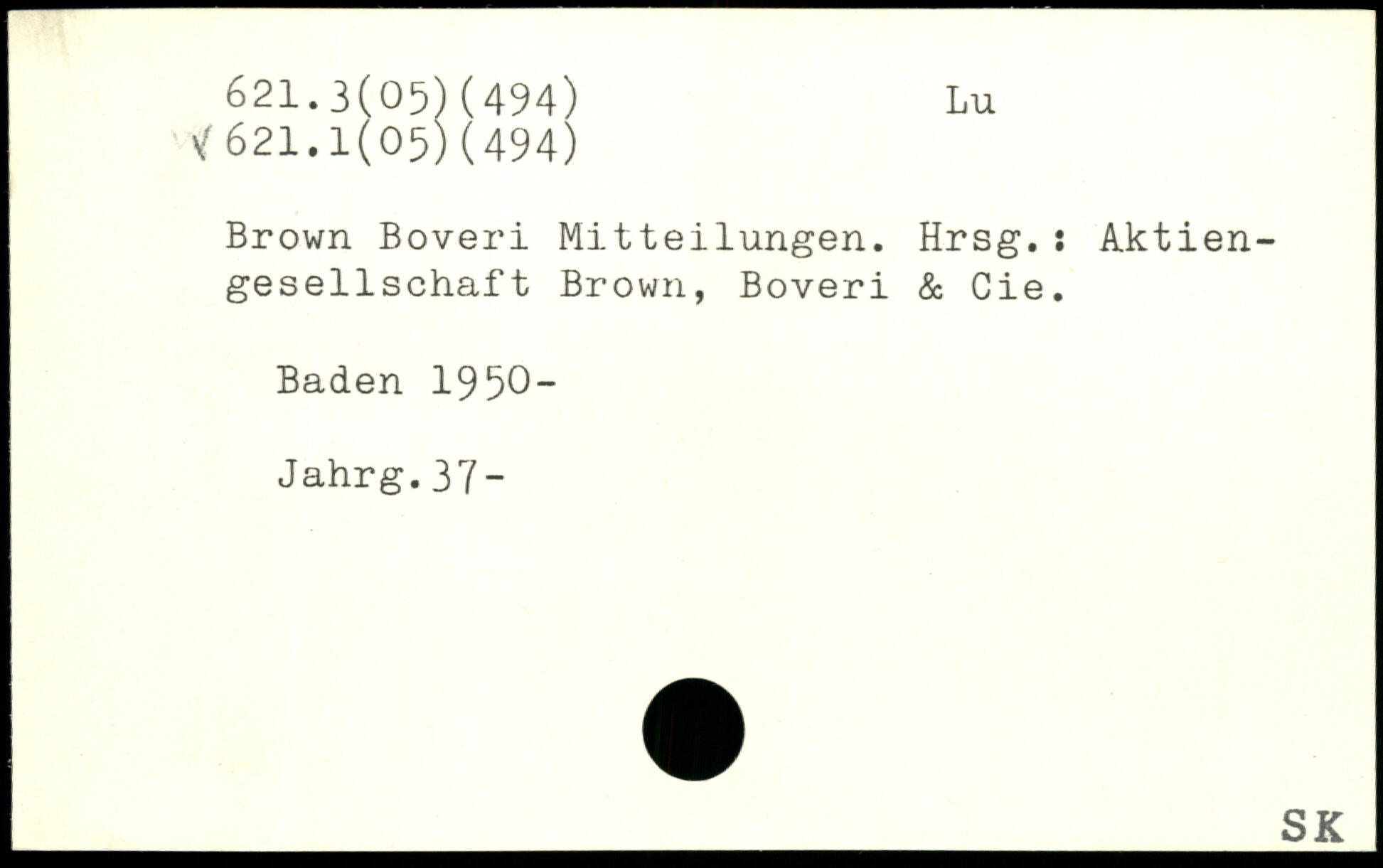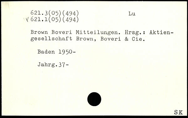 Brown Boveri Mitteilungen. Hrsg.: Aktiengesellschaft Brown, Boveri & Cie. Baden 1950- Jahrg.37-