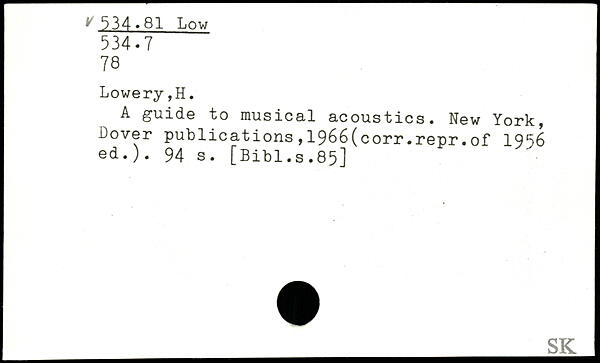 A guide to musical acoustics. New York, -Dover publications ,1966(corr.repr.of