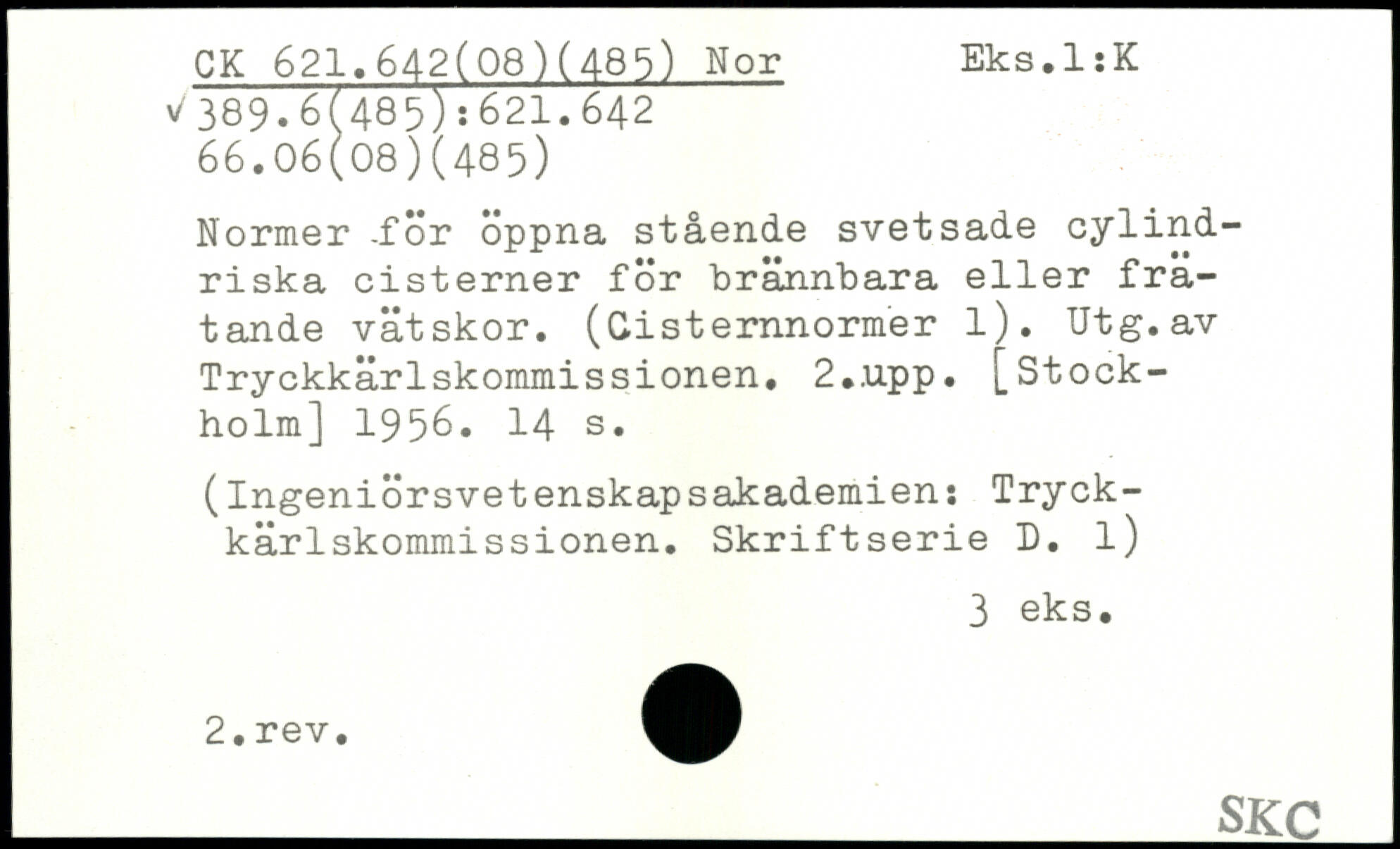 Normer -för öppna stående svetsade cylindriska cisterner för brännbara eller frätande vätskor. (Gisternnormer l). Utg.av Tryckkärlskommissionen, 2..upp.