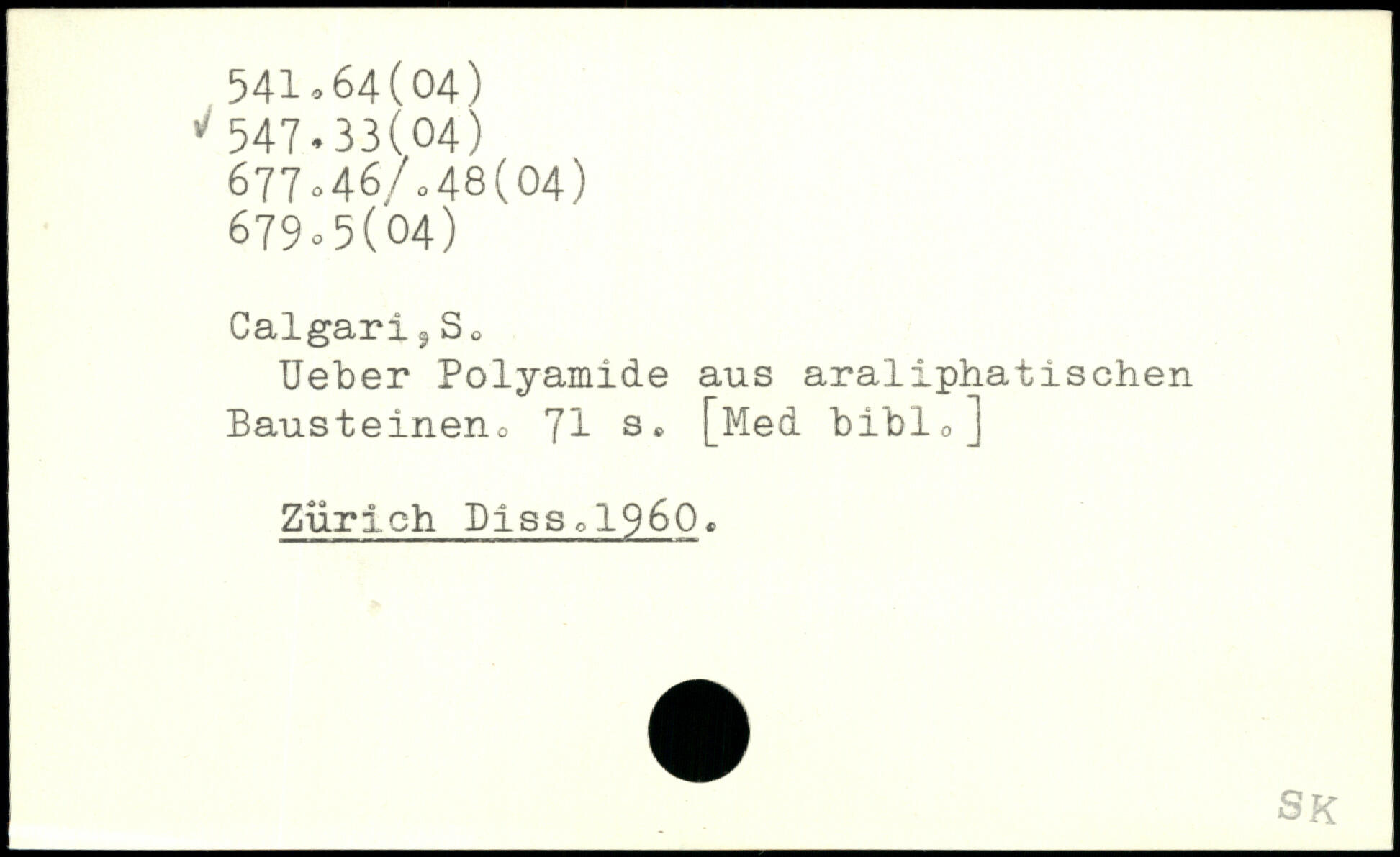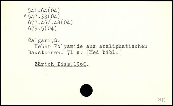 Ueber Polyamide aus araliphatischen Bausteineno 7I s, [Med biblo] Zurich Disso1960