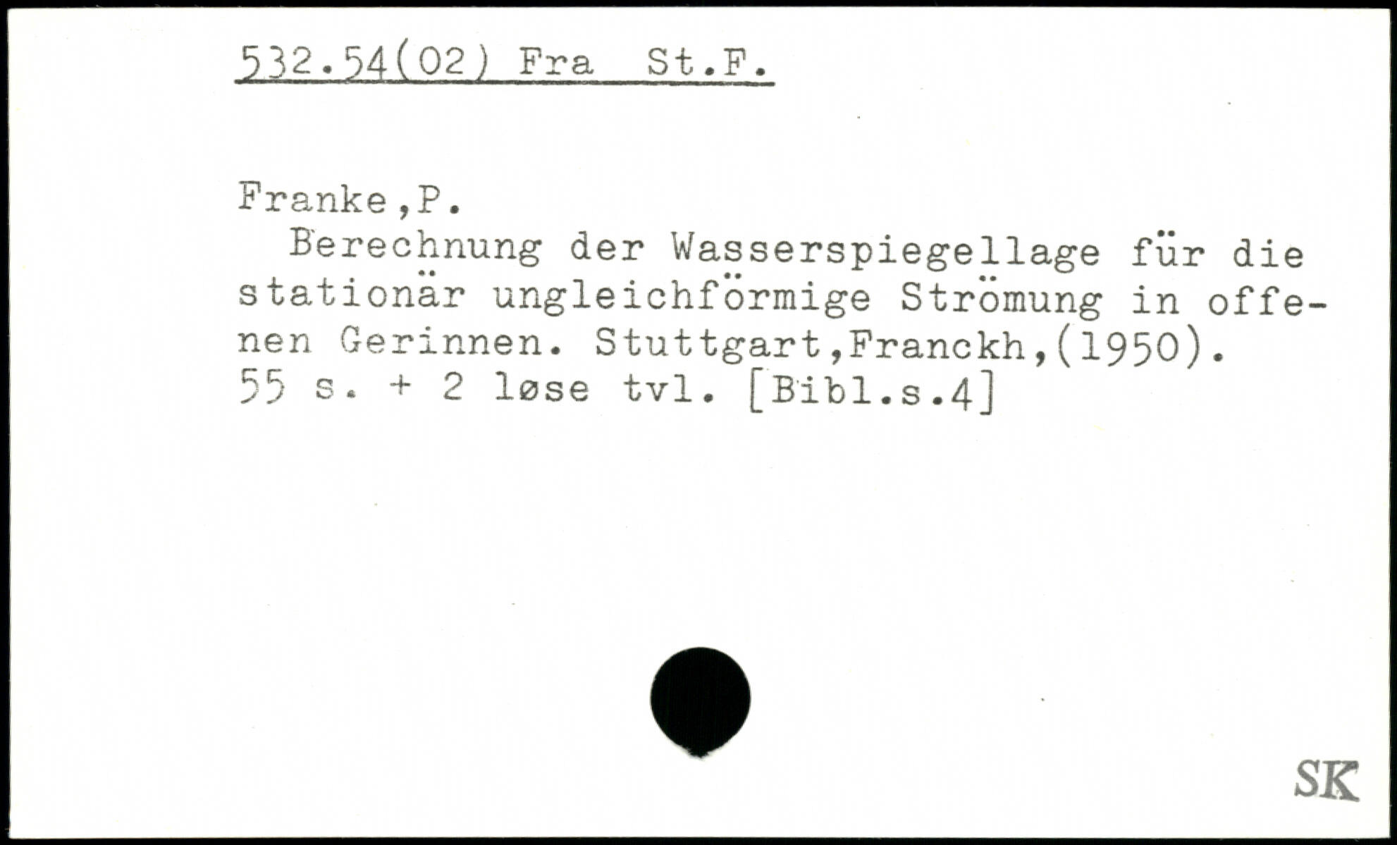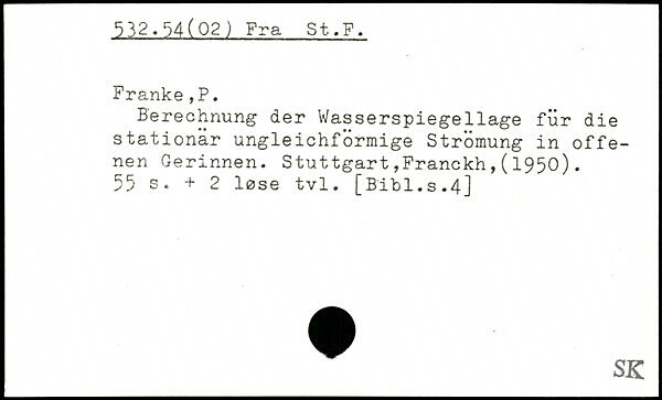 Berechnung der Wasserspiegellage für die stationär ungleichförraige Strömung in offenen Gerinnen. Stuttgart,Franckh,(1950).