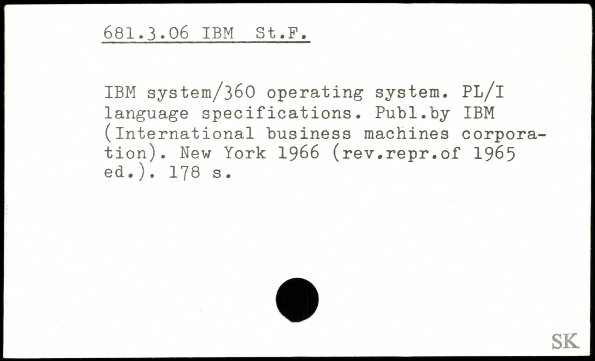 IBM systera/360 operating system. PL/! language specifications.