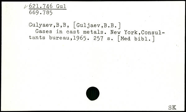 Gulyaev,B,B, [Guijaev,B.B.] Gases in cast metals.