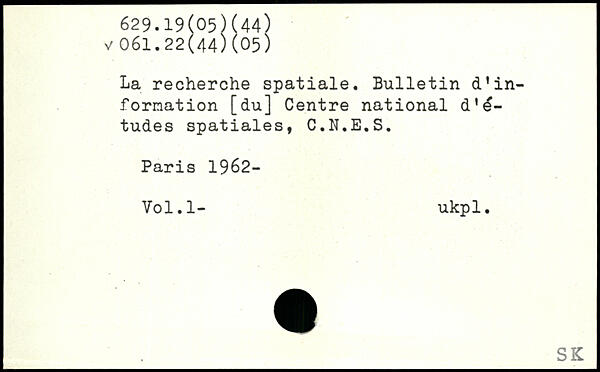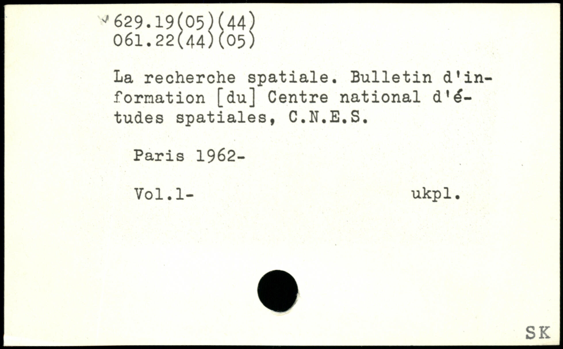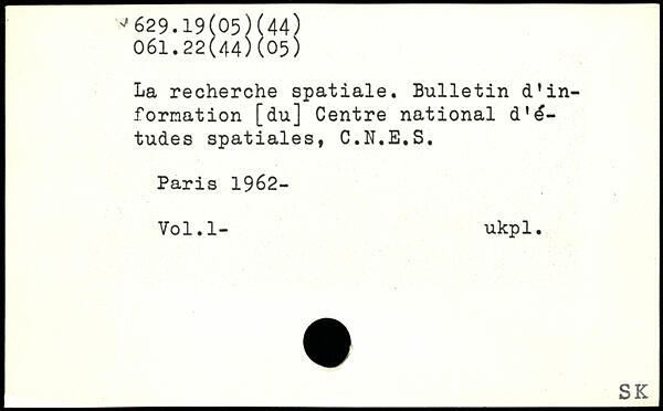 La recherche spatiale. Bulletin d.information [du] Centre national d’études spatiales, C.N.E.S.
