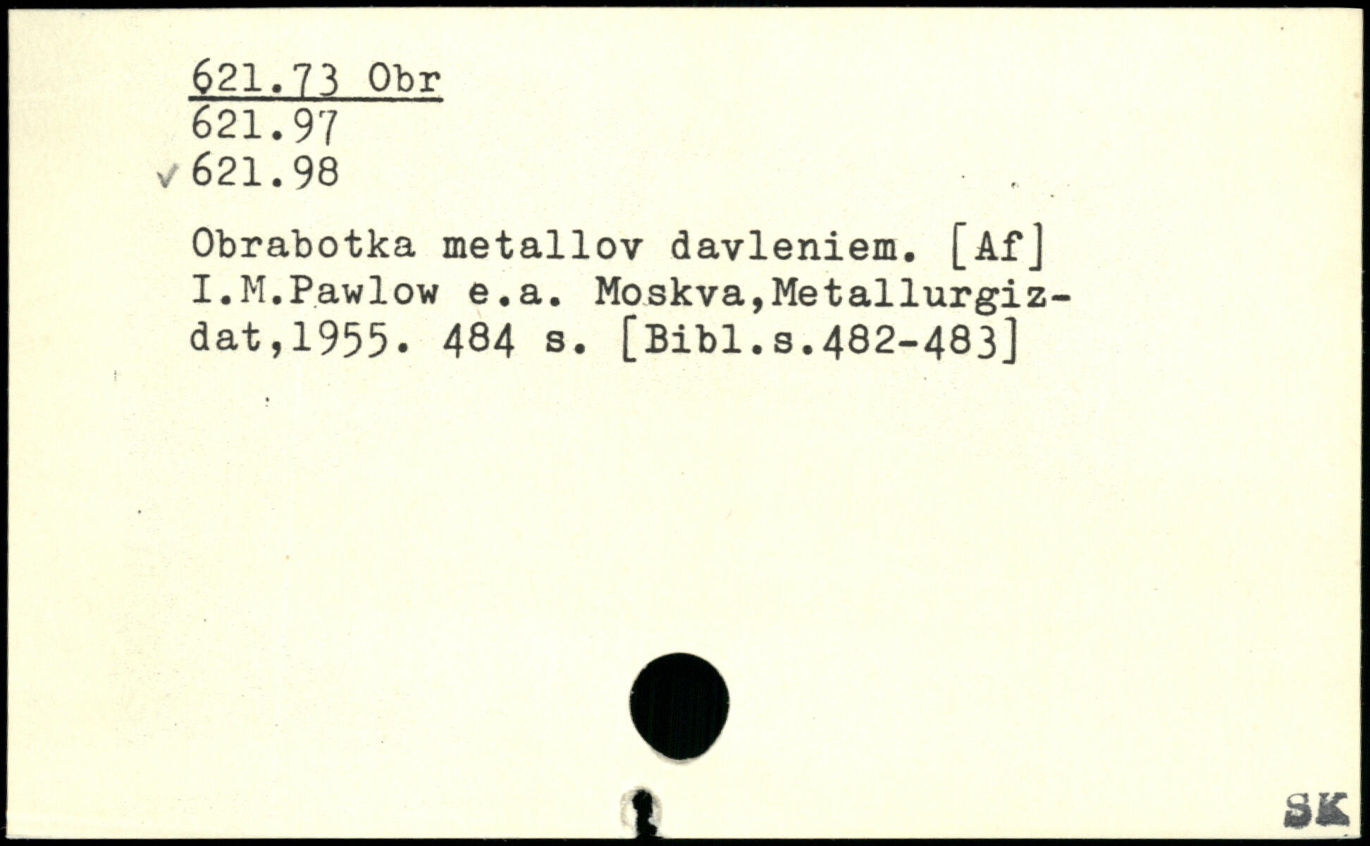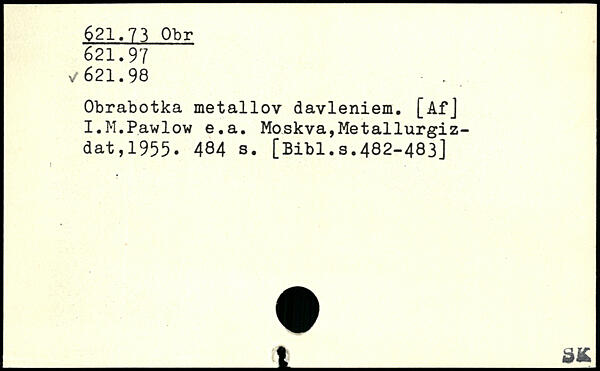 Obrabotka metallov davleniem. [AfJ I.M.Pawlow e.a.