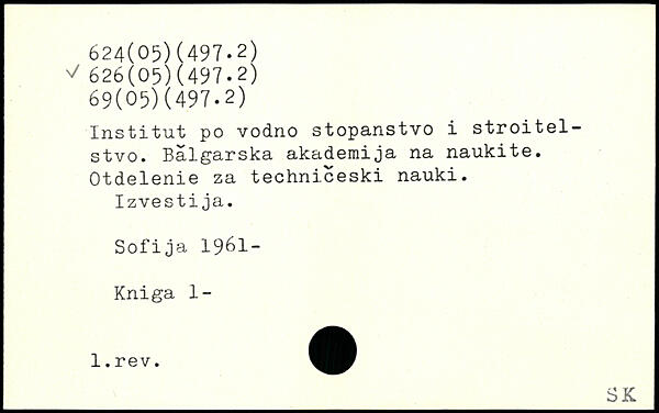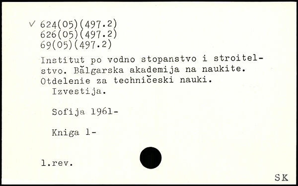 Institut po vodno stopanstvo i stroitel-stvo. Balgarska akademija na naukite. Otdelenie za techniceski nauki. Izvestija. Sofija 1961-Kniga 1-