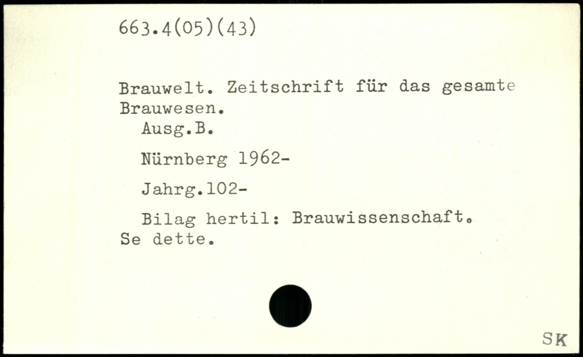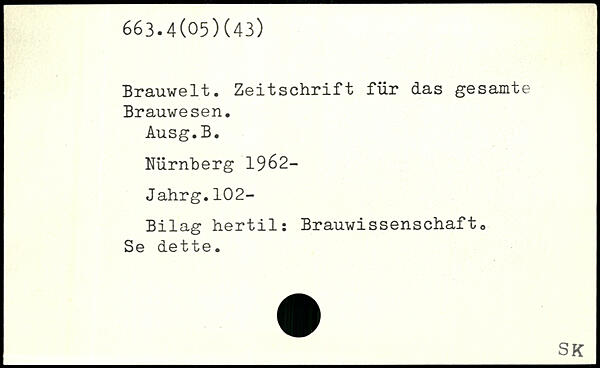 Brauwelt. Zeitschrift für das gesamte Brauwesen. Ausg.B. Nürnberg 1962-Jahrg.102- Bilag hertil: Brauwissenschaft. Se dette.