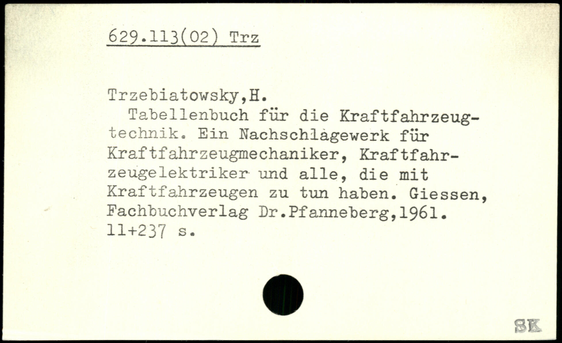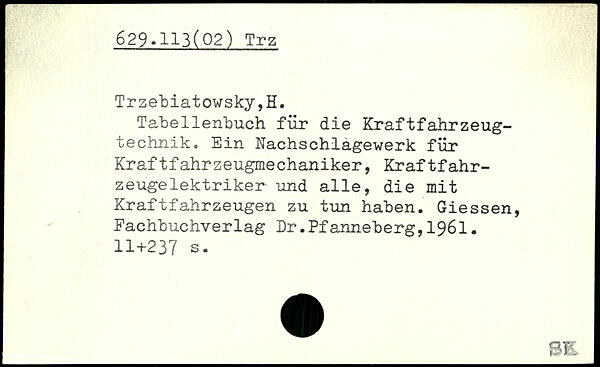 Tabellenbuch für die Kraftfahrzeug-technik. Ein Nachschlagewerk für Kraftfahrzeugmechaniker, Kraftfahrzeugelektriker und alle, die mit Kraftfahrzeugen zu tun haben. Giessen, Fachbuchverlag Dr.Pfanneberg,1961.