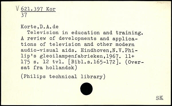 Television in education and training. A review of developments and applications of television and other modern audio-visual aids. Eindhoven,N.V.Philip’s gleoilampenfabrieken,1967. 11+
