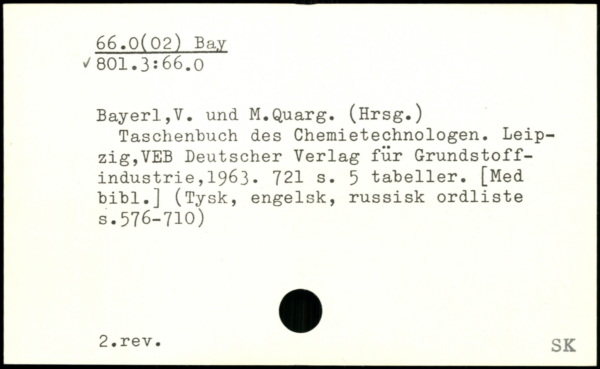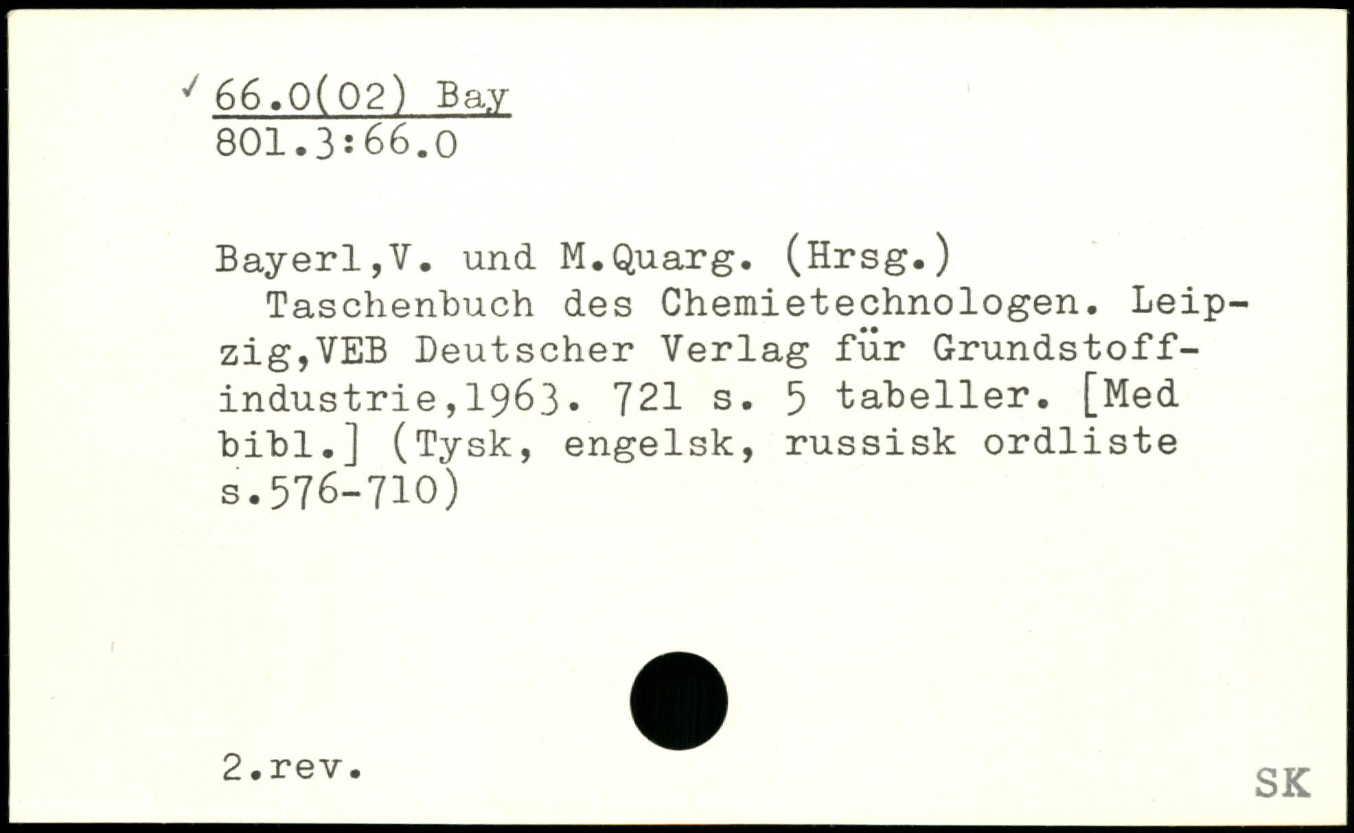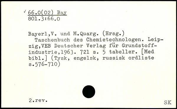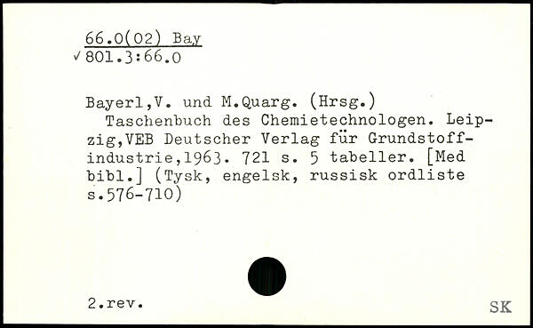 Bayerl,V. und M.Quarg. (Hrsg.) Taschenbuch des Chemietechnologen. Leipzig,VEB Deutscher Verlag für Grundstoffindustrie , 1963.