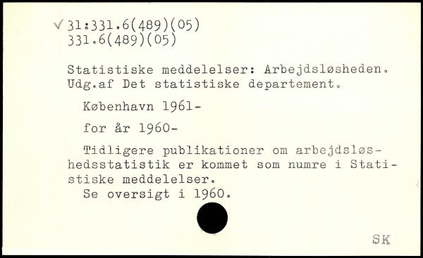 Statistiske meddelelser: Arbejdsløsheden. Udg.af Det statistiske departement.