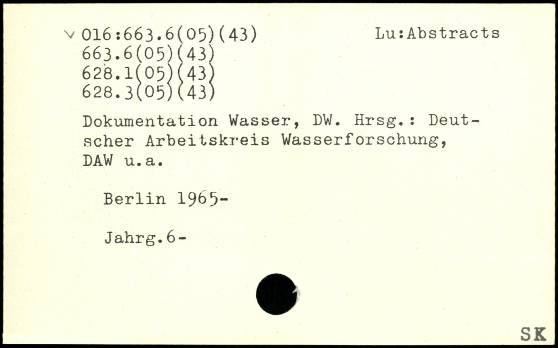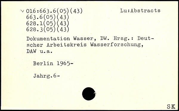 Dokumentation Wasser, DW. Hrsg.: Deutscher Arbeitskreis Wasserforschung, DAW u.a. Berlin 19^5- Jahrg.6-