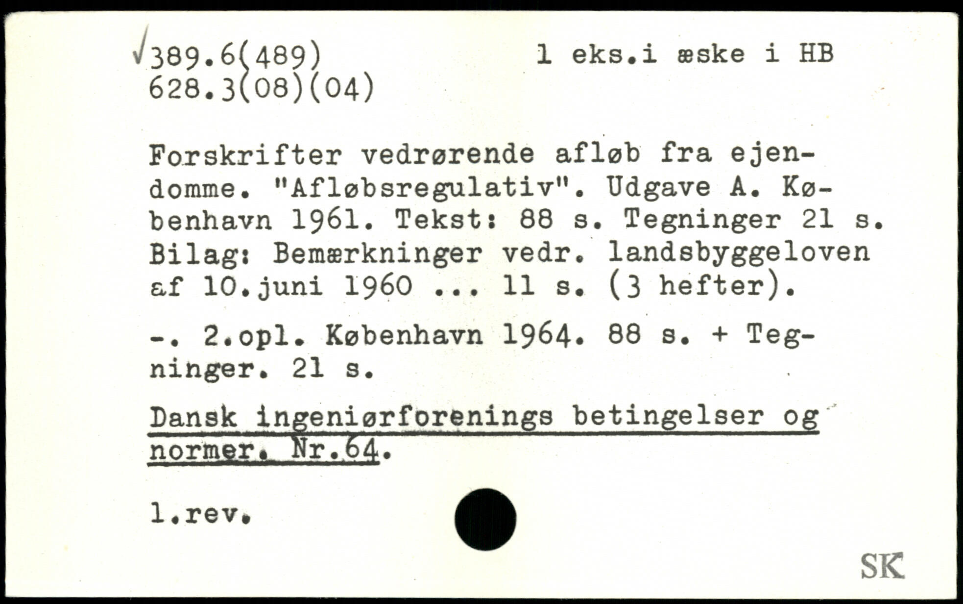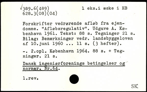 Forskrifter vedrørende afløb fra ejendomme. "Afløbsregulativ". Udgave A.