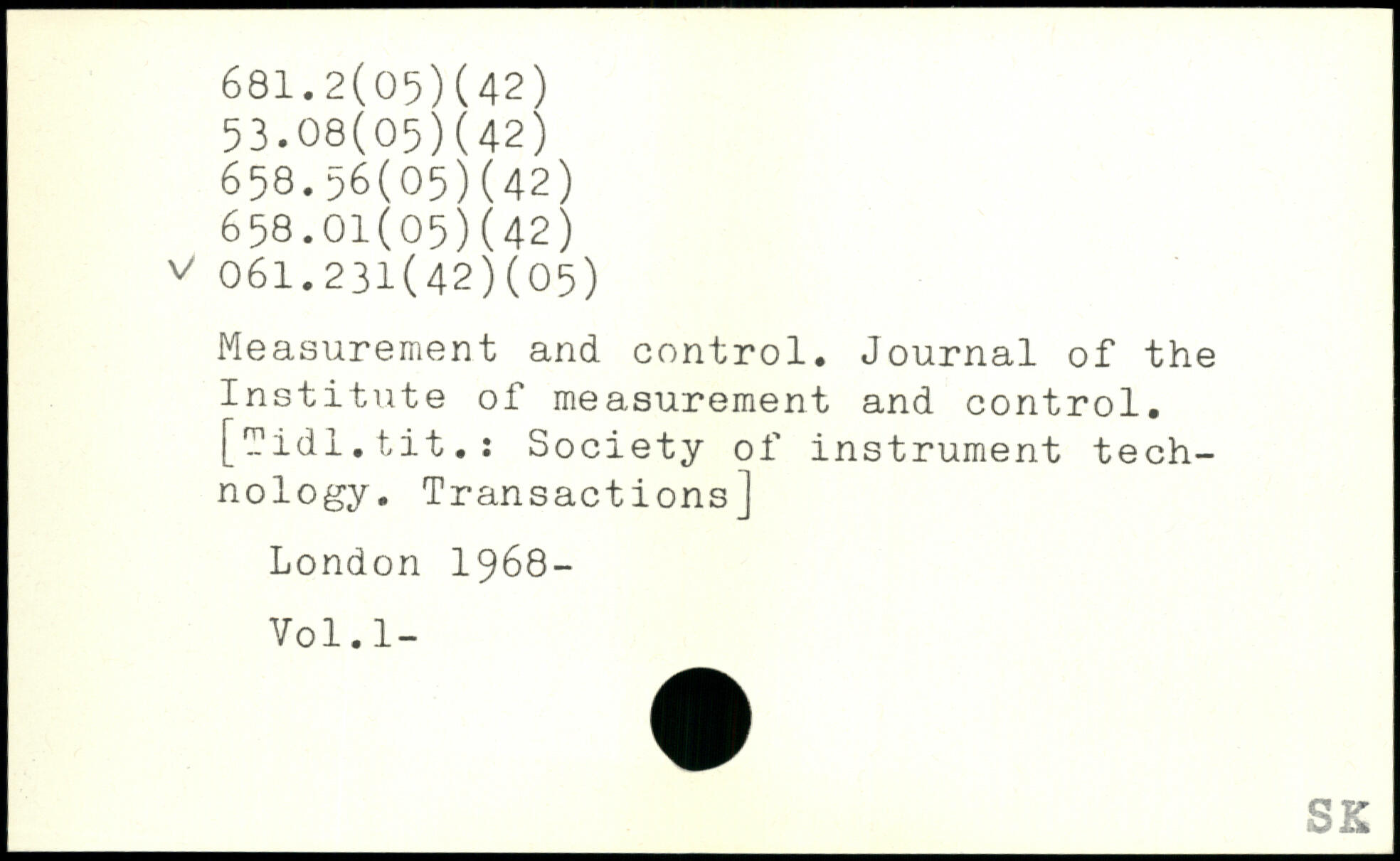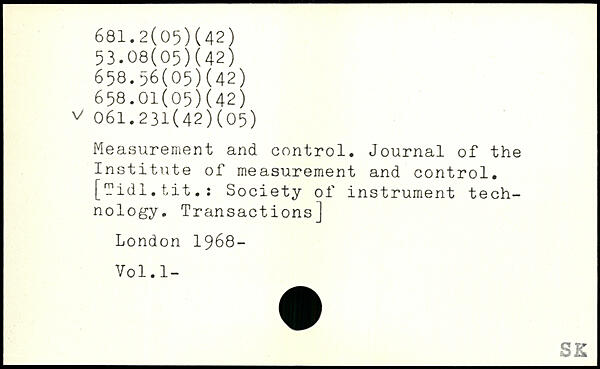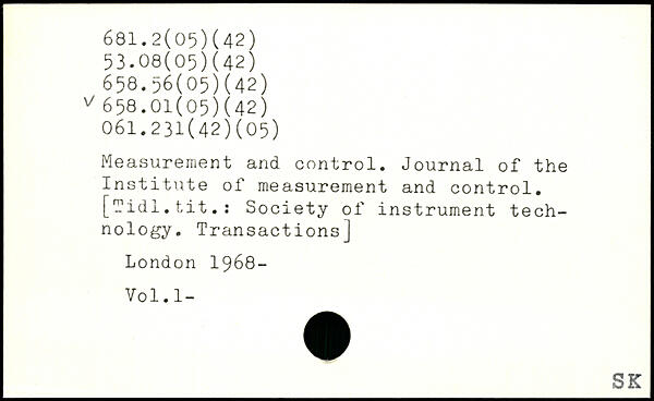 Measurement and control. Journal of the Institute of measurement and control, [-idl.tit.: Society of instrument technology. Transactions]