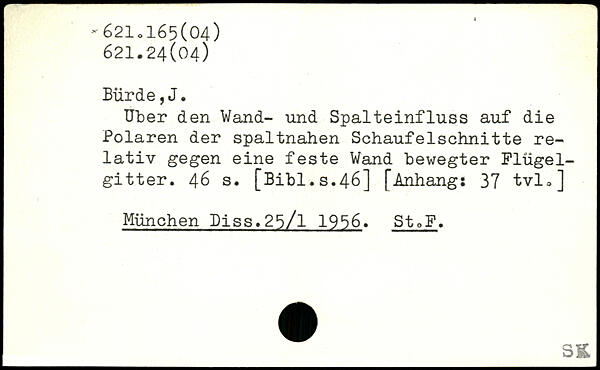 Uber den Wand- und Spalteinfluss auf die Polaren der spaltnahen Schaufelschnitte relativ gegen eine feste Wand bewegter Flügelgitter.
