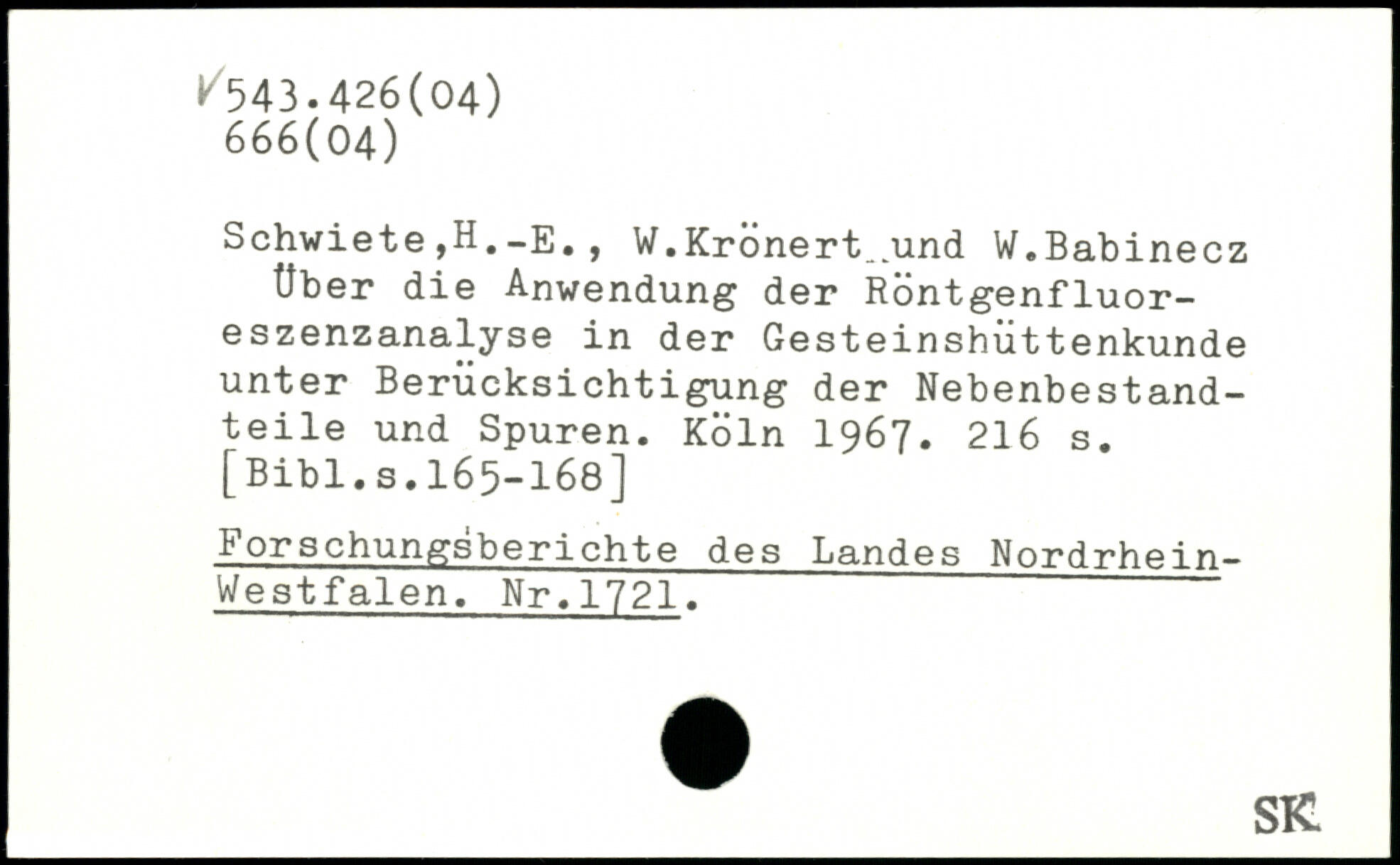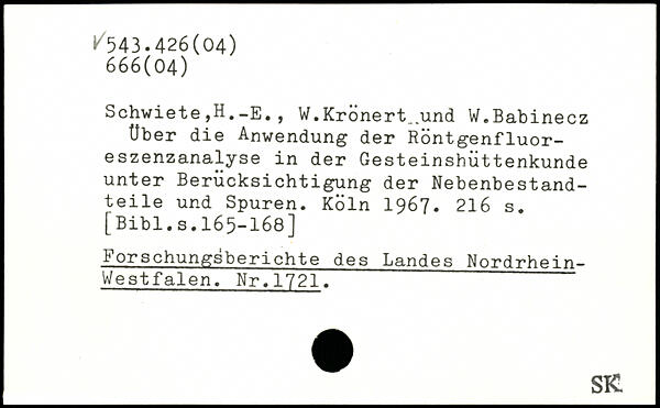 Schwiete ,H._e. , W.Krönert_und W.Babinecz Uber die Anwendung der Röntgenfluoreszenzanalyse in der Gesteinshüttenkunde unter Berücksichtigung der Nebenbestandteile und Spuren.