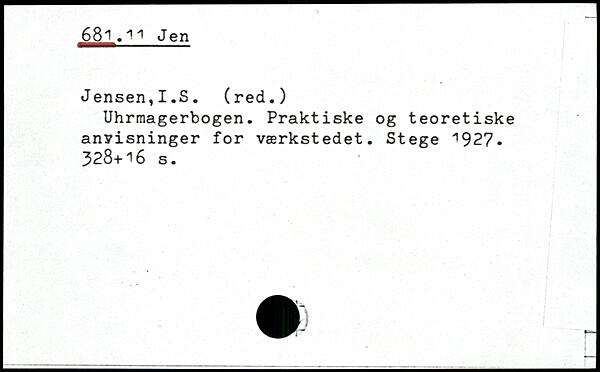 Uhrmagerbogen. Praktiske og teoretiske anvisninger for værkstedet. Stege 1927-