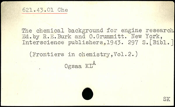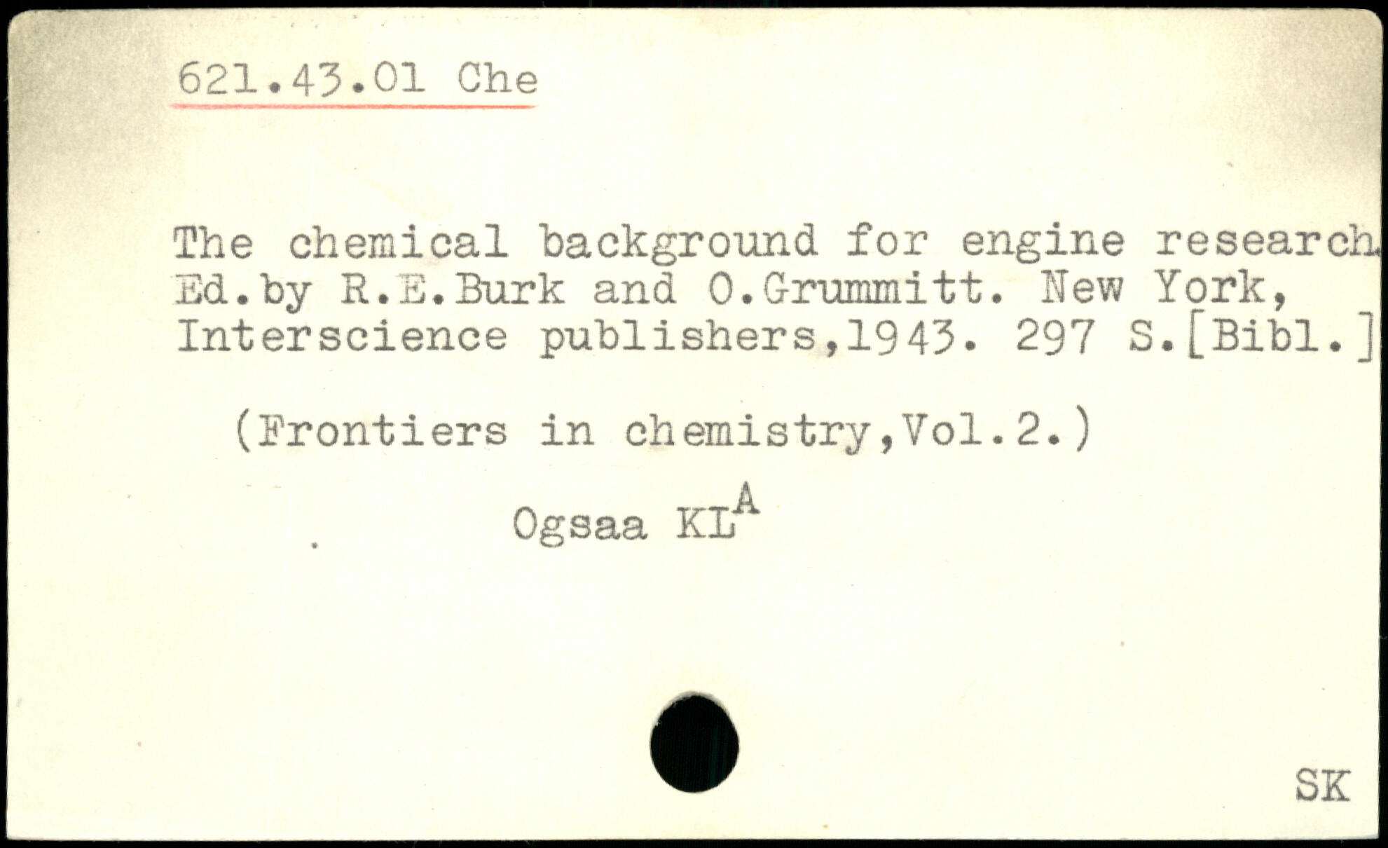 The chemical "background for engine research Ed.by R.E.Burk and 0.Grummitt. hew