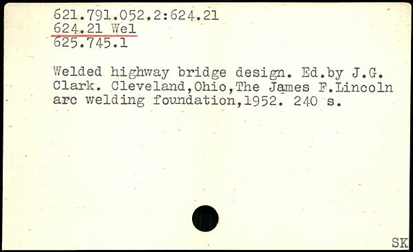 Welded highway bridge design. Ed.by J.G. Clark. Cleveland,Ohio,The James F.Lincoln arc welding foundation,1952.