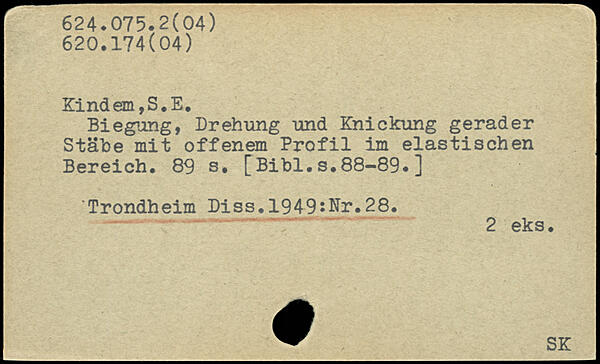 Biegung, Drehung und Knickung gerader Stäbe mit offenem Profil im elastischen Bereich.
