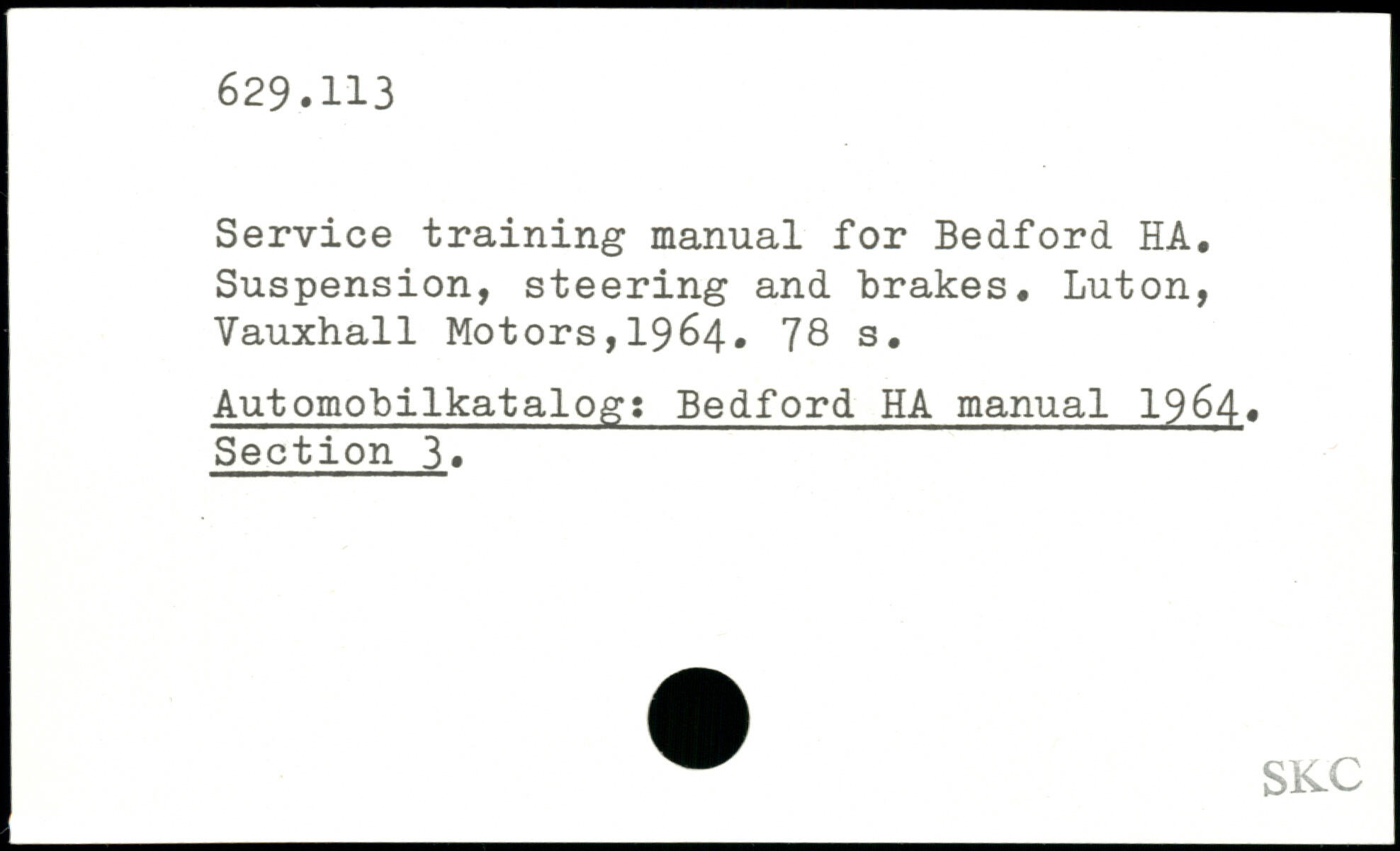 Service training manual for Bedford HA. Suspension, steering and brakes.