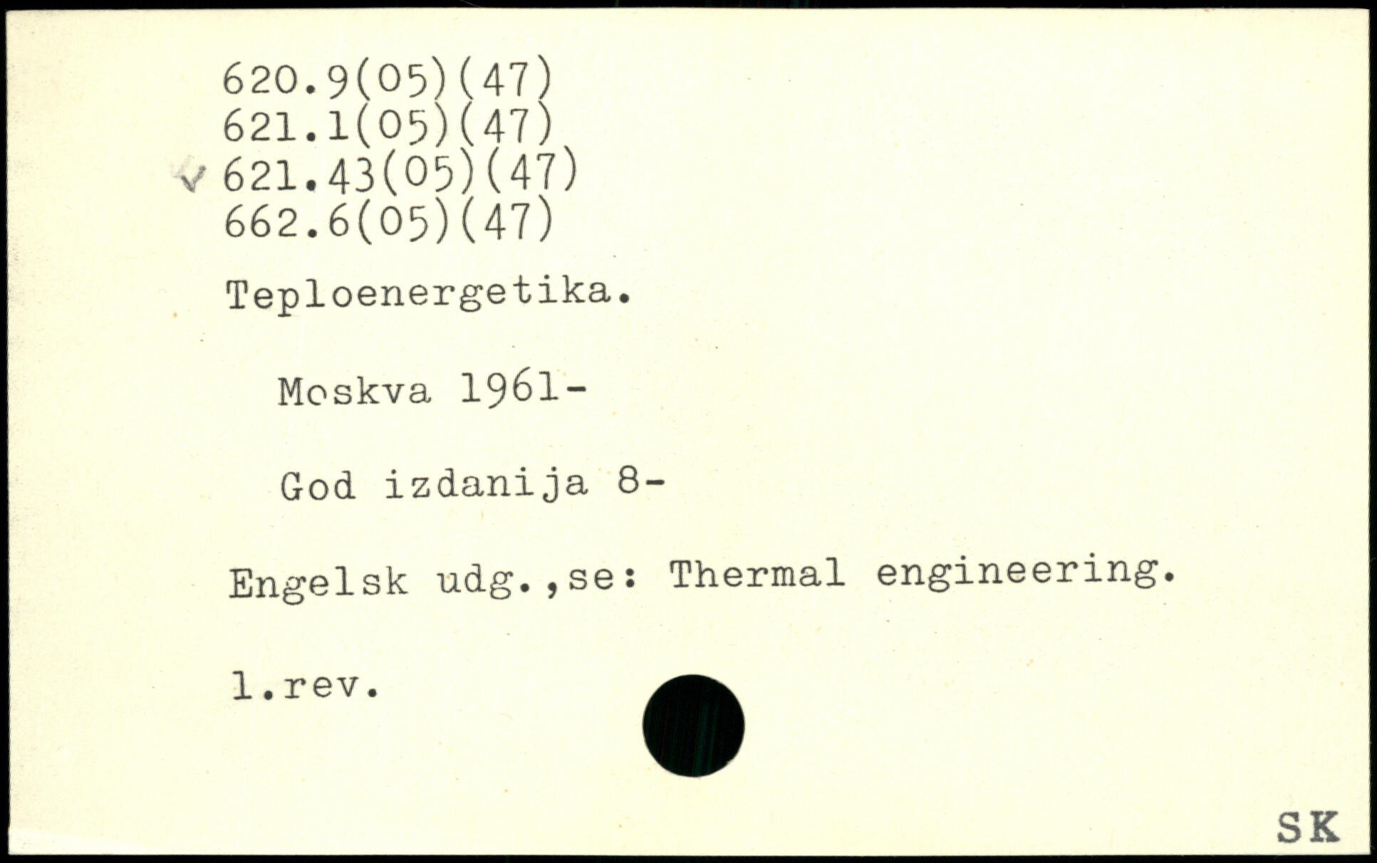 Moskva 1961-God. izdanija 8- Engelsk udg.,se: Thermal engineering. _