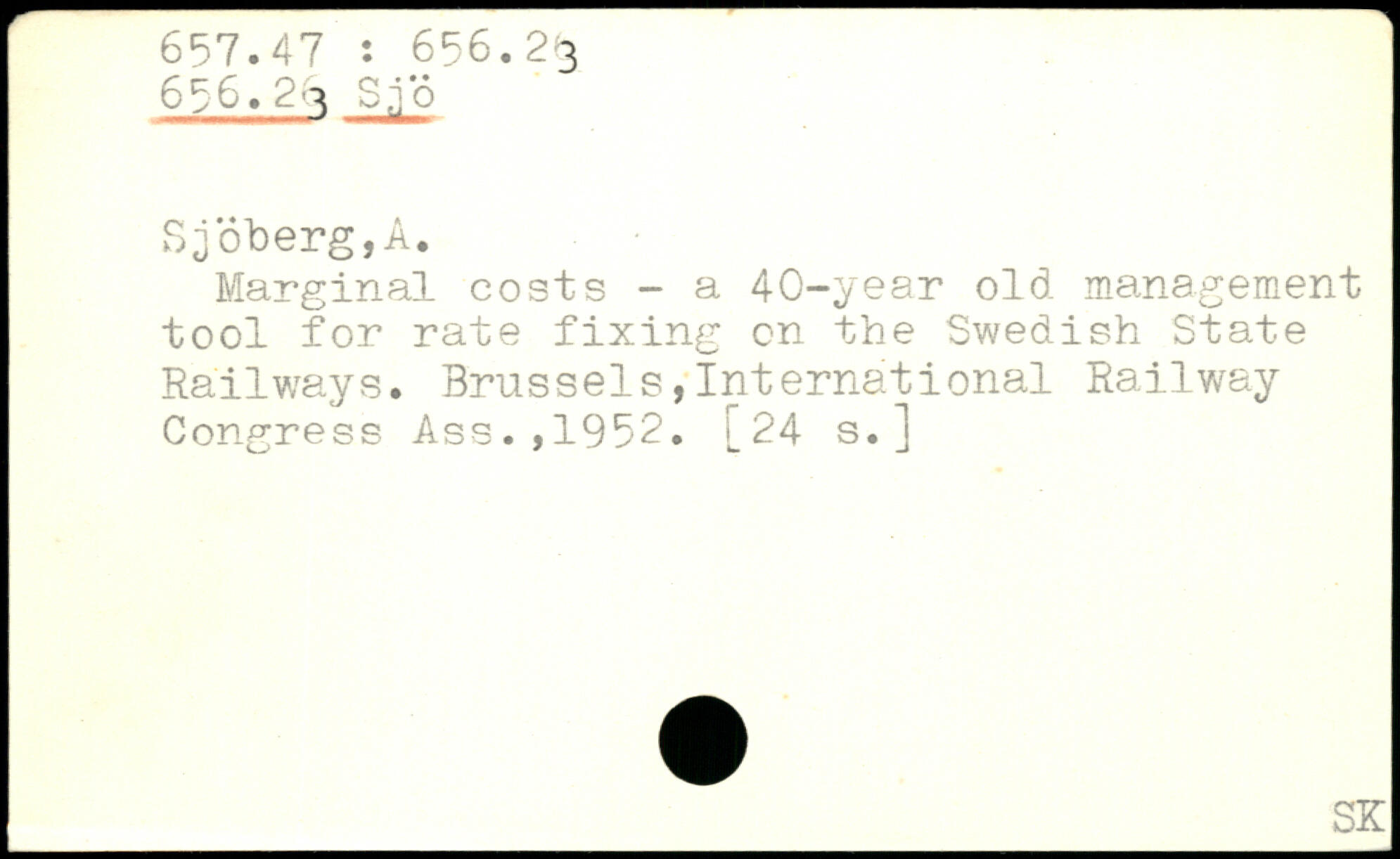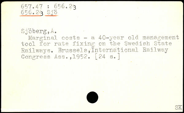 Marginal costs - a 40-year old management tool for rate fixing on the Swedish State Railways. Brussels,international Railway Congress Ass.,1952. [