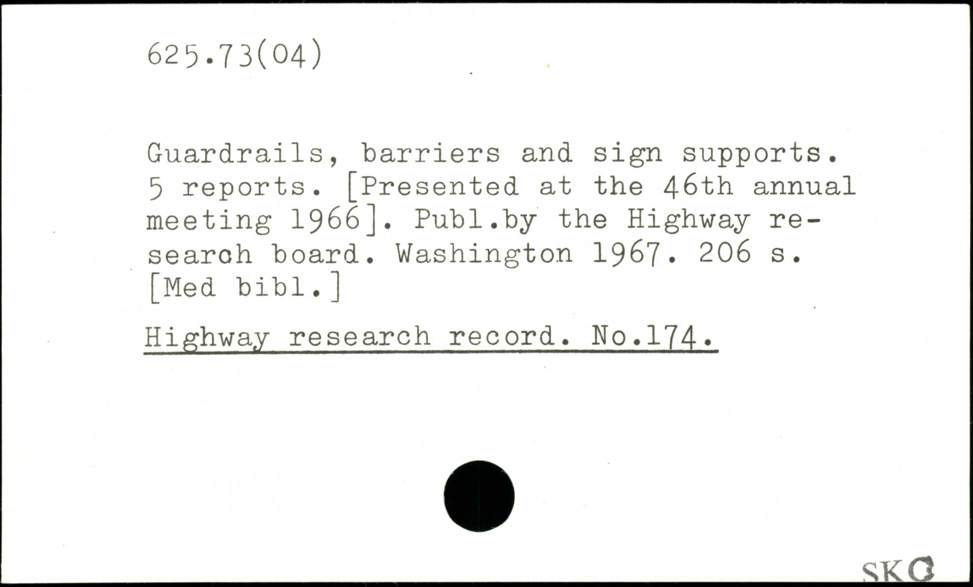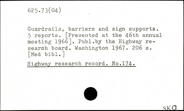Guardrails, barriers and sign supports. 5 reports. [Presented at the 46th annual meeting 1966].
