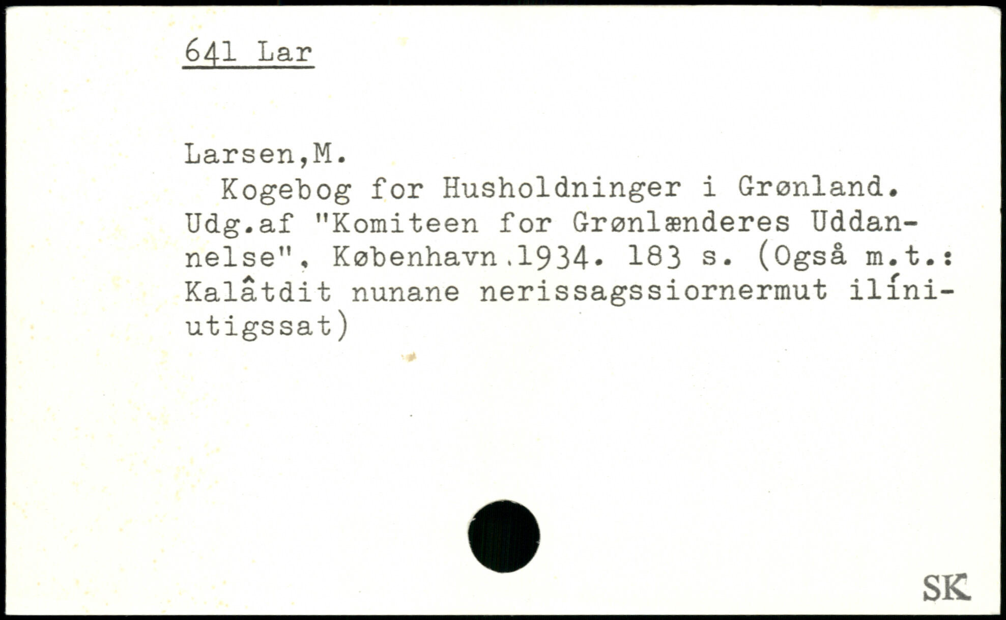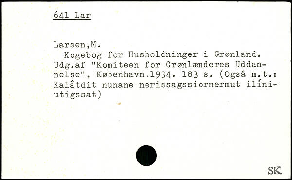 Kogebog for Husholdninger i Grønland. Udg.af ”Komiteen for Grønlænderes Uddannelse", København.1934.